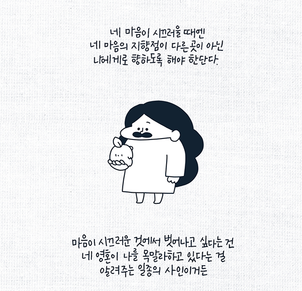 하나님. 마음이 복잡하고… 시끄러울 때가… 있습니다. 지금 가고 있는 이 길이, 이 생각이 맞는 건지 어지럽습니다. 그러나 이러할 때조차 제 마음속에서는 벗어나고자 하는 갈망이 있음을 고백합니다. 주님을 향한 이 목마른 열망의 사인에 응답하겠습니다. 주님을 구하겠습니다. 주님께 가는 그 길을 잃지 않게 하소서.