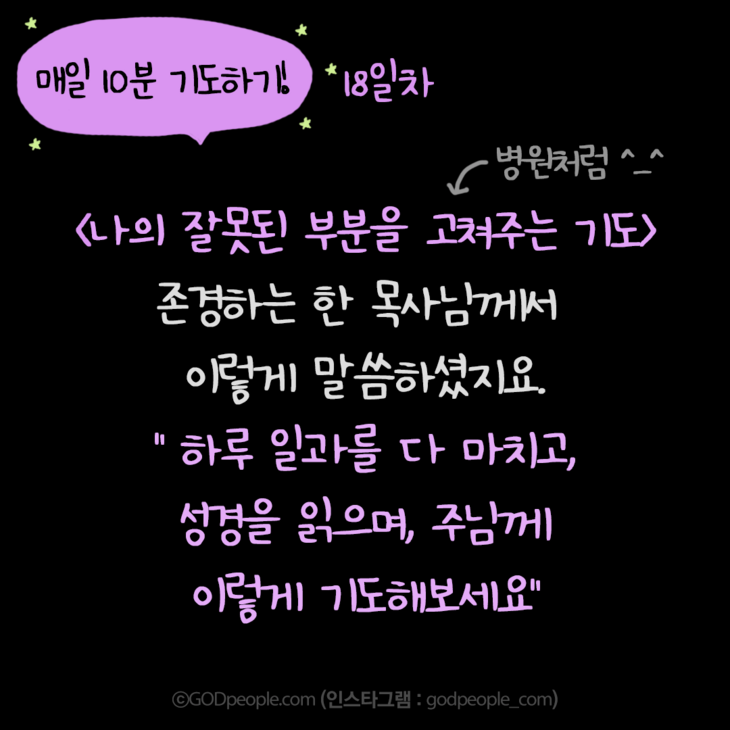 주님의 말씀과, 기도로 우리가 주님 성품 닮기를 소망하면서^-^ 오늘 <매일 10분기도> 힘차게 시작할게요!
