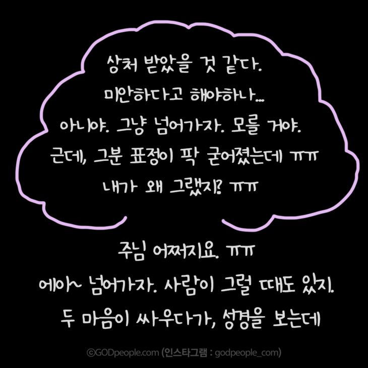 그렇게 상처를 주고 넘어갔다면 ㅠㅠ... 어찌되었을까요? 연자맷돌을 지고;;; 여튼. 그분도 사과를 부드럽게 받아주셔서 감사했네유