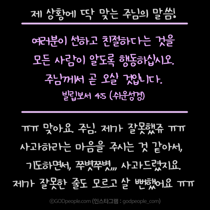 또 사과를 해야 하는지, 그냥 넘어가고 다음부터 행동을 조심해야할지도 여쭤보세요. (예전에 어떤 사람은"내가 너를 미워했어. 미안해.." 이랬다가 몰랐던 상대방이 더 상처받고;; 관계가 더 틀어졌었다고;;) 항상 성령하나님의 인도하심을 구하는 것이 중요한 것 같아요^^
