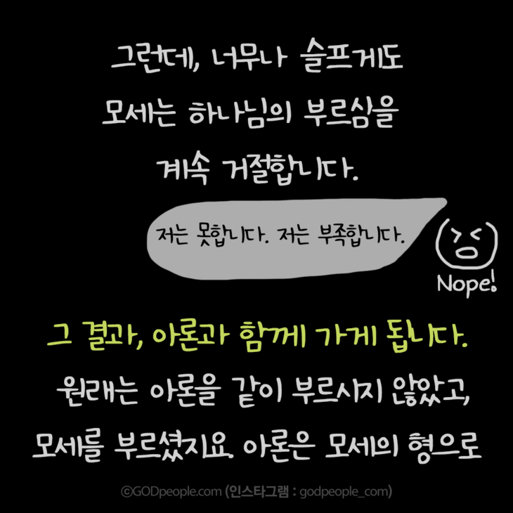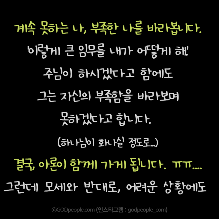 보통 하나님의 약속은 사이즈가 너무 커서, @_@ 네에에? 제가요? 못...합니...다가 자동으로 나오는 경우가 많은 것 같아요.