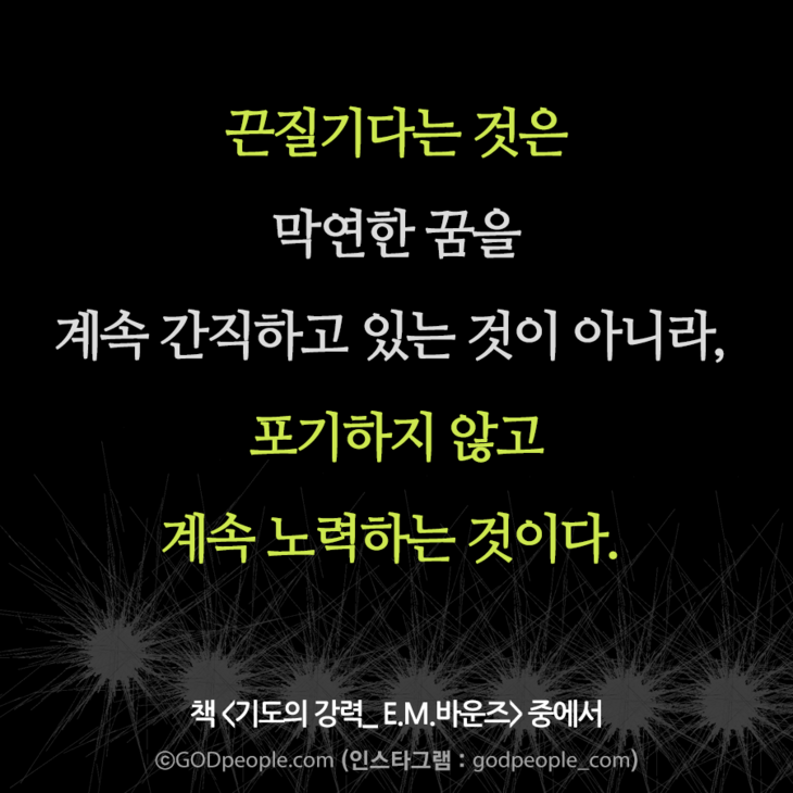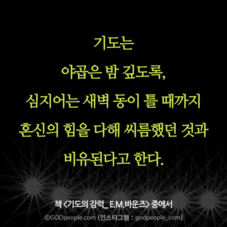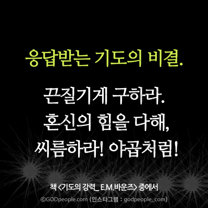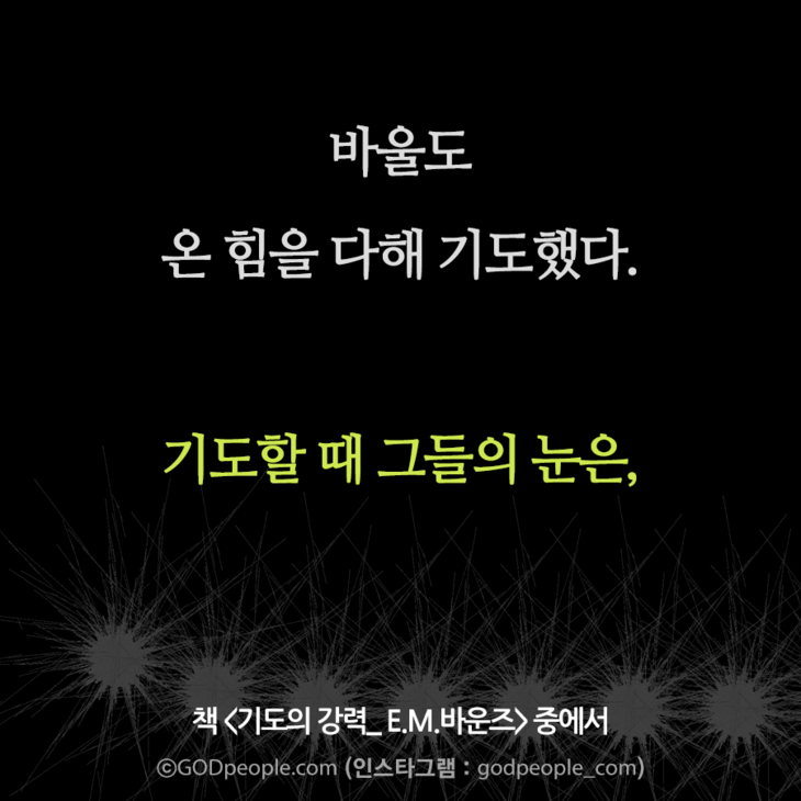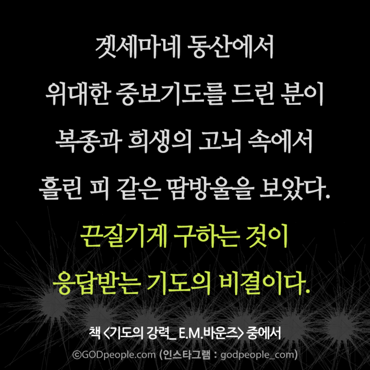 * 갓피플 인스타 : 인스타에서도 갓피플을 만날 수 있어요! (팔로잉~)▶ http://www.instagram.com/godpeople_com좋아요아멘개척교회 돕기 2021-03-16 · 4377 · 158 · 기도응답응답EM바운즈바울갓피플인스타응답받는기도의비결비결기도비결야곱의씨름갓피플 인스타더보기그렇게 준비하고 헌신했는데,,,그의 인생은 허무하게 끝난 것처럼 보였습니다. 그러나결혼에서 매우 중요한 부분! 기억하세요.내 생각이 너무 강해서, 주님의 사인도 못 알아들으면 어떡해요?