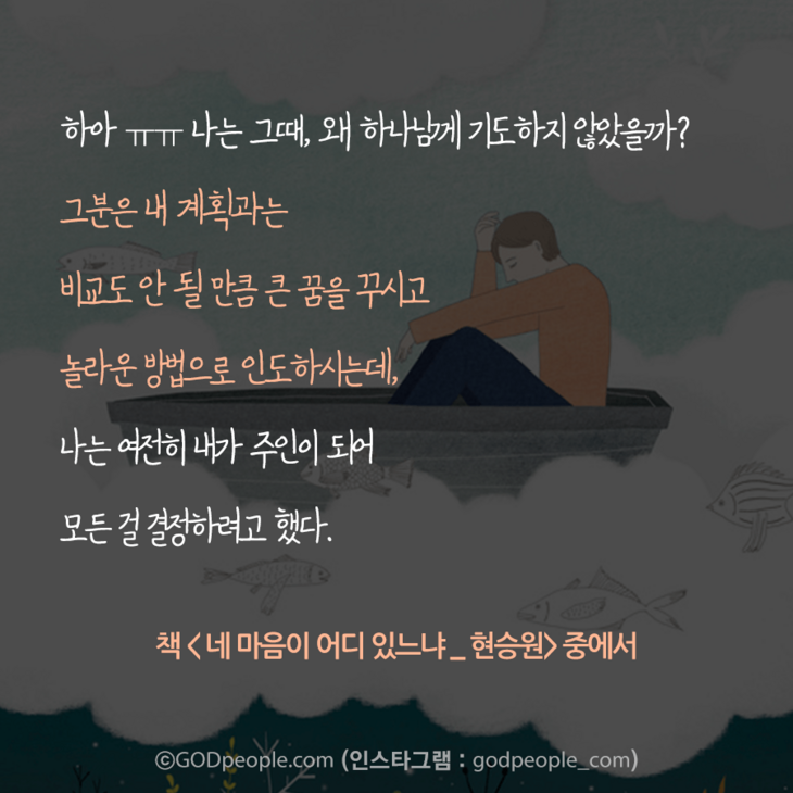 그분은 내 계획과는 비교도 안 될 만큼 큰 꿈을 꾸시고 놀라운 방법으로 인도하시는데, 나는 여전히 내가 주인이 되어 모든 걸 결정하려고 했다.