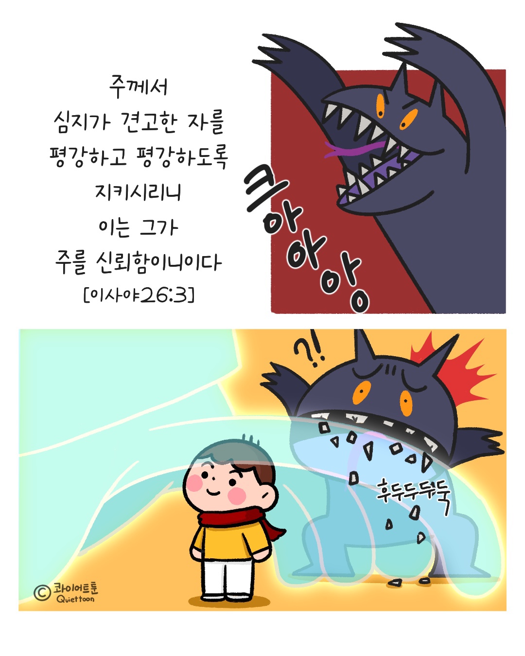 홍기두 작가 작품활동 응원하기!지난 20년간 갓피플 만화는 주보 사용을 무료로 제공해왔습니다. 이제는 작가들에게 작은 정성을 표현하면 어떨까요? 주보 1회 사용시 1,000원의 자발적 결제 후 이용해주세요주보사용 자발적 결제1,000원작가에게 커피 한잔선물하기좋아요아멘개척교회 돕기 2025-02-15 · 1296 · 26 · 14그림묵상이사야콰이어트툰_홍기두더보기너를 지키시기를 원하며난 여호와로 즐거워하리 !흑암과 빛이 같음이니이다