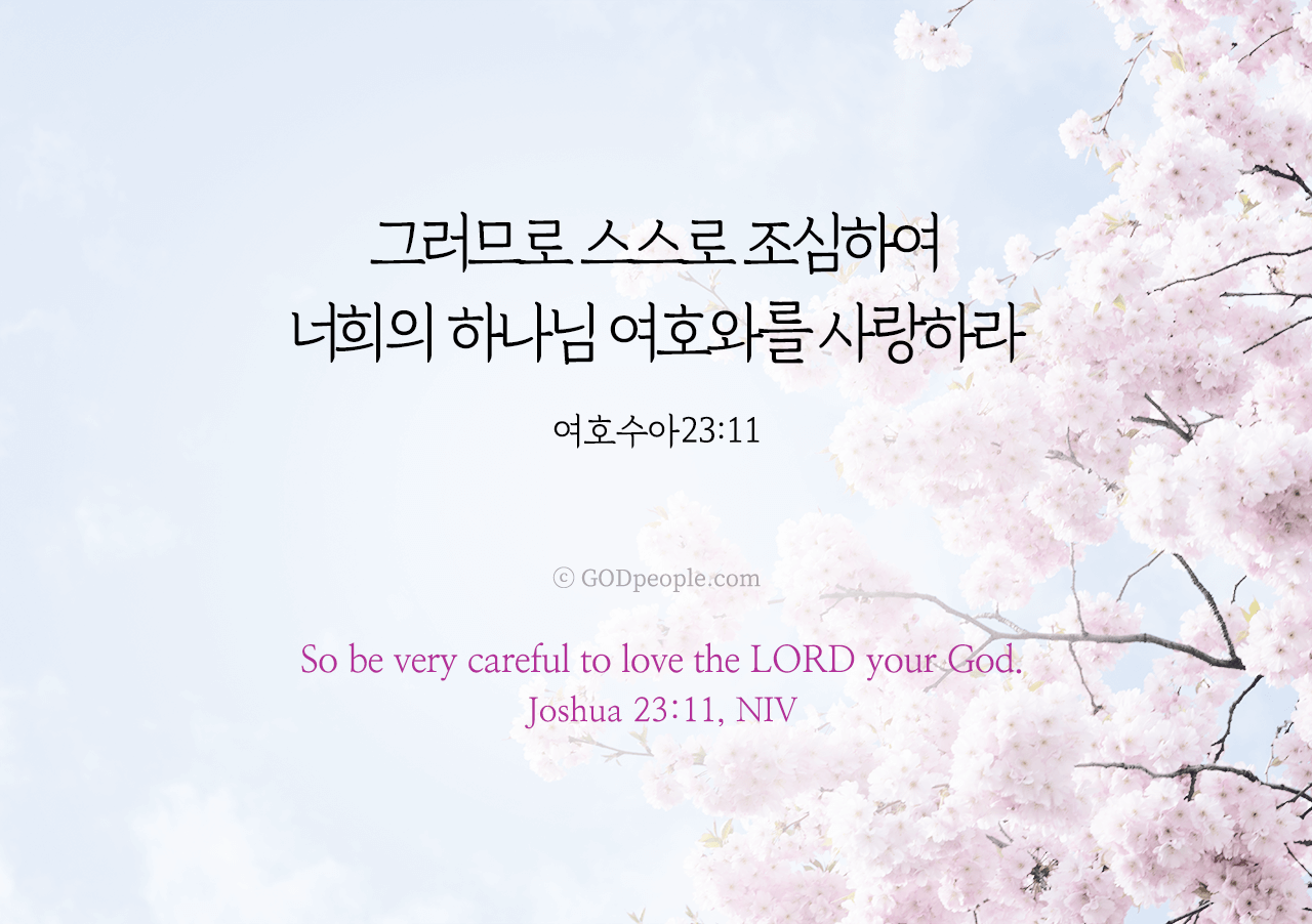 그러므로 스스로 조심하여 너희의 하나님 여호와를 사랑하라 _여호수아 23:11So be very careful to love the LORD your God. _Joshua 23:11, NIV ♥ 교도소 재소자에게 성경책을 보내드립니다. [플로잉전용상품] 재소자에게 성경책 보내기_우리말성경 단본(실버그린)우리말성경 단본 (무색인/무지퍼/페이퍼백/실버그린/DKV2406)두란노 편집부 [플로잉전용상품] 재소자에게 성경책 보내기_큰글로 읽는 우리말 비전성경 중단본(호박색)큰글로 읽는 우리말 비전성경 중단본(색인/무지퍼/PU/호박색/DKV2206)도서출판 두란노두란노 편집부 위 성경책을 구매 (플로잉 Flowing) 하시면 "프리즌 리바이벌 PRISON REVIVAL "을 통해서 국내 교정기관의 담장 안에서 지내시는 분들에게 전달됩니다.♥ 수용자 자녀에게 성경만화, 묵상365를 보내드립니다. [플로잉전용상품] 수용자 자녀에게 성경만화 보내기_만화 예수님의 생애 세트 (전3권)온 가족이 함께 보는 사복음서김동순 [플로잉전용상품] 수용자 자녀에게 성경만화 보내기_[개역개정판] 카툰성경 세트(완간/전3권)그린이 : 키이스 닐리, 데이비드 마일즈 [플로잉전용상품] 갓피플 통해 쌀 보내기_백미 (10kg)오픈스토리 [플로잉전용상품] 맛있는 반찬보내기_김치세트 (유기농백김치+겉절이)참식품주식회사 위 상품 구매 (플로잉 Flowing) 하시면 "세움"을 통해서 수용자(교도소 재소자) 자녀들에게 전달됩니다.+오늘의말씀으로 만들었어요♡ 오늘의말씀 아크릴 자석액자+말씀을 듣고 필사하세요♡ 개역개정 MP3 다운로드 | 태블릿으로 필사 | 종이노트로 필사 좋아요아멘개척교회 돕기 2025-03-18 · 3003 · 224 · 오늘의말씀 말씀카드 여호수아23장11절 전도오늘의말씀더보기갓피플 오늘의말씀_에스겔36장36절갓피플 오늘의말씀_갈라디아서4장18절갓피플 오늘의말씀_누가복음6장23절