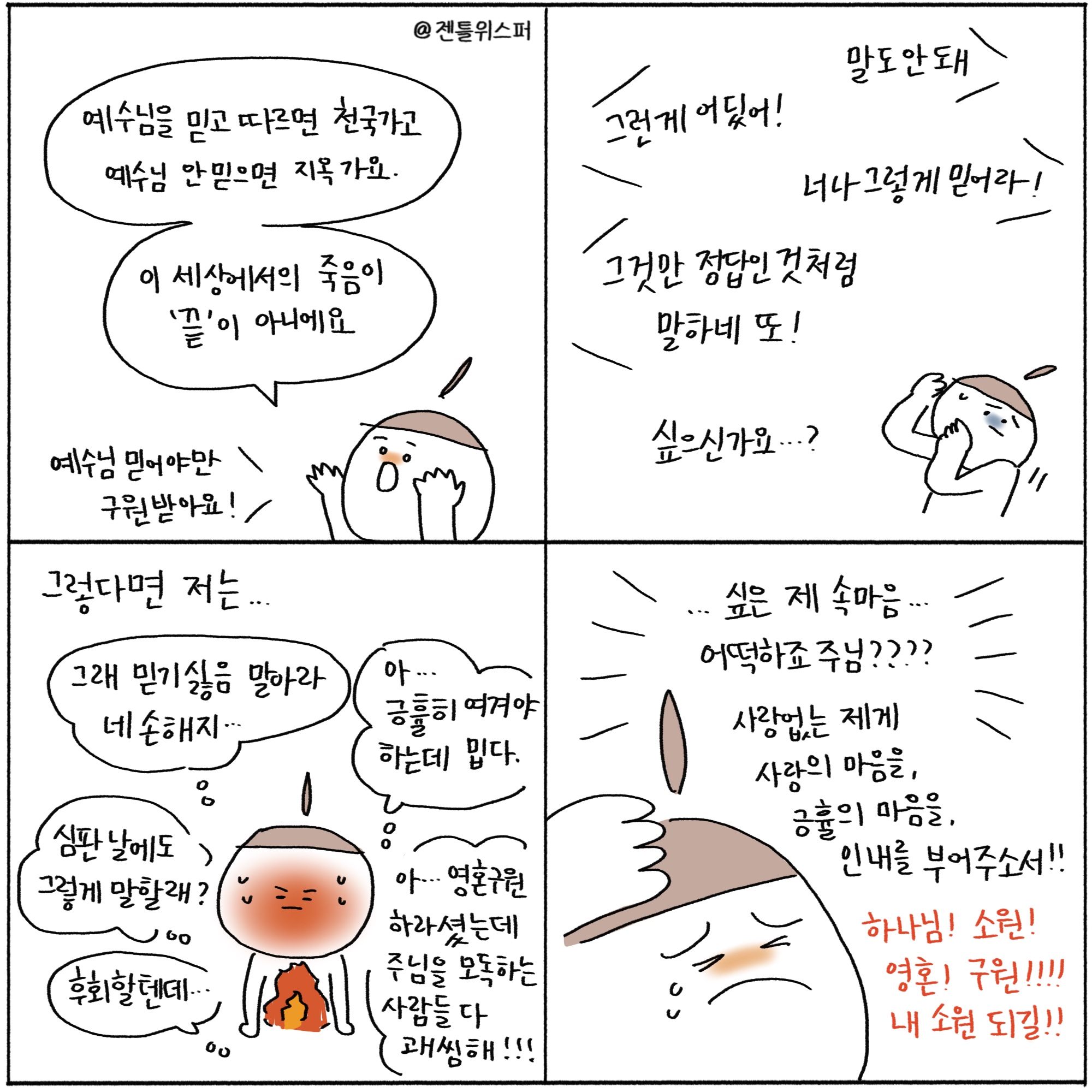 주보용 4컷 묵상 131 도저히 못 믿겠는 상황에서도 by 젠틀위스퍼 / 다운로드(파일)jpg / 2000*2000pixel / 300dpi / 806KB 주보용 4컷 묵상 129 하나님도 공동체로 일하시듯 by 젠틀위스퍼 / 다운로드(파일)jpg / 2000*2000pixel / 300dpi / 575KB최세미 작가 작품활동 응원하기!지난 20년간 갓피플 만화는 주보 사용을 무료로 제공해왔습니다. 이제는 작가들에게 작은 정성을 표현하면 어떨까요? 주보 1회 사용시 1,000원의 자발적 결제 후 이용해주세요주보사용 자발적 결제1,000원작가에게 커피 한잔선물하기좋아요아멘개척교회 돕기 2025-03-28 · 1440 · 10 · 5하나님소원 영혼구원 하지만 내마음 노긍휼 주님마음내게주소서 사랑으로 포기하지 않도록God's gentle whisper_최세미더보기시편23:1널 위해 기도하고 있어!어떤 순간에도