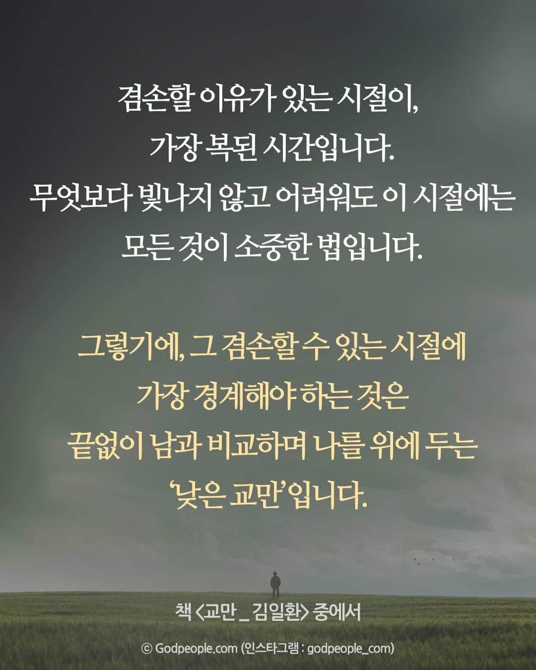 그렇기에, 그 겸손할 수 있는 시절에 가장 경계해야 하는 것은 ‘낮은 교만’입니다.