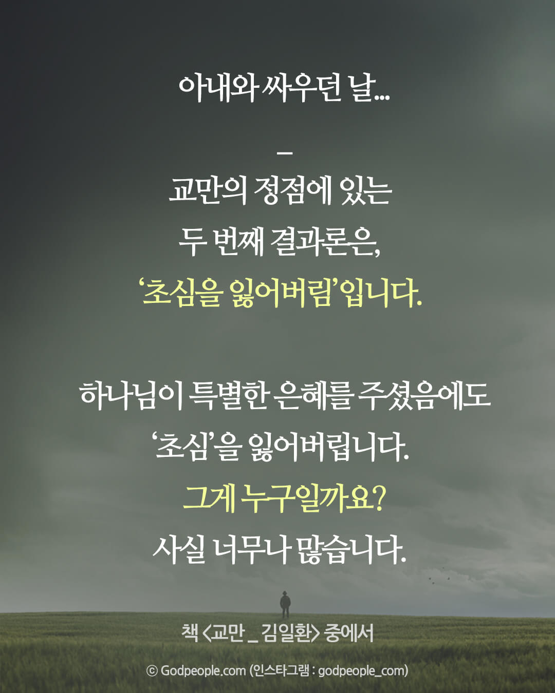 그리고 교만은 소중하게 여겨야 할 그 처음 마음을 훼손합니다.