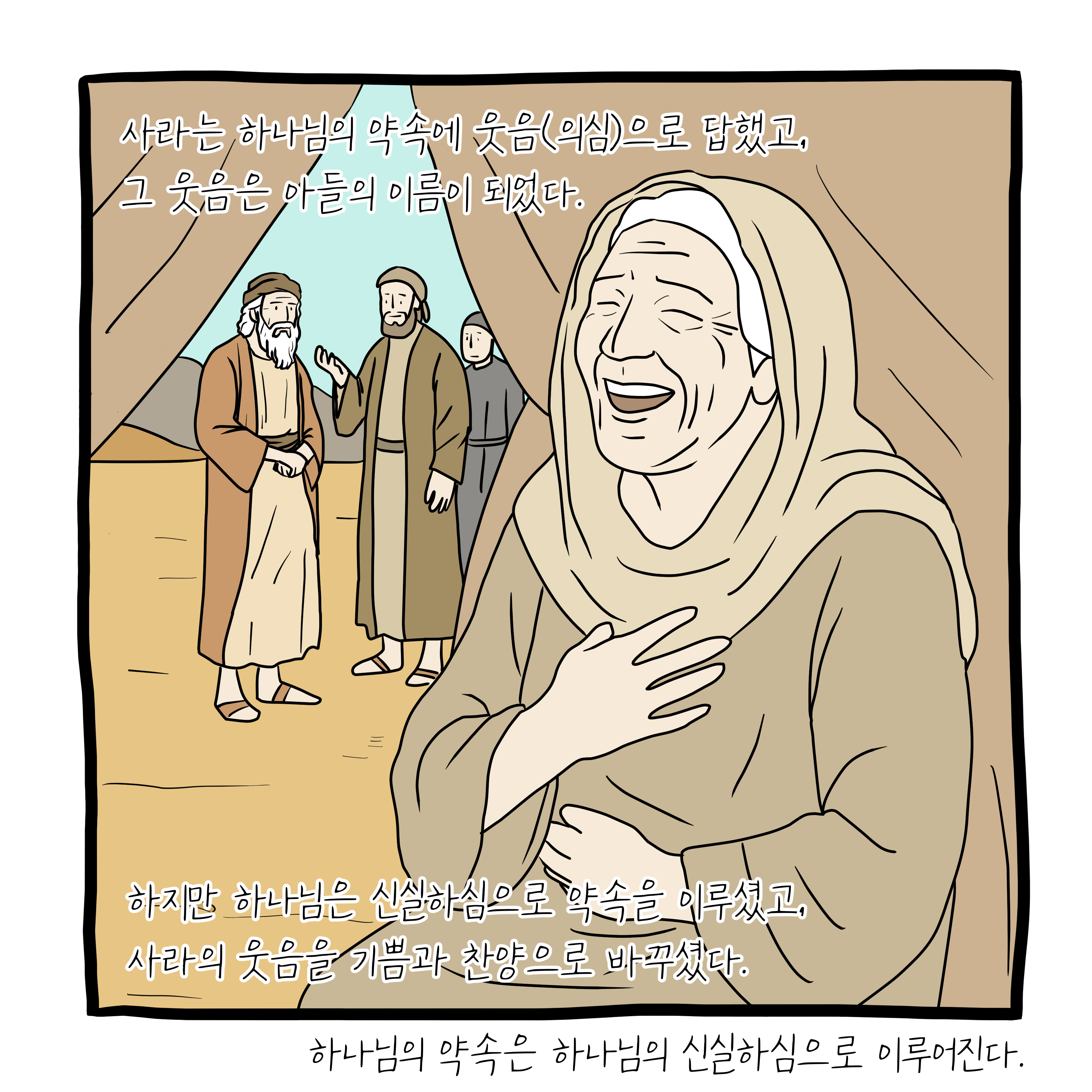 사라는 하나님의 약속에 웃음(의심)으로 답했고