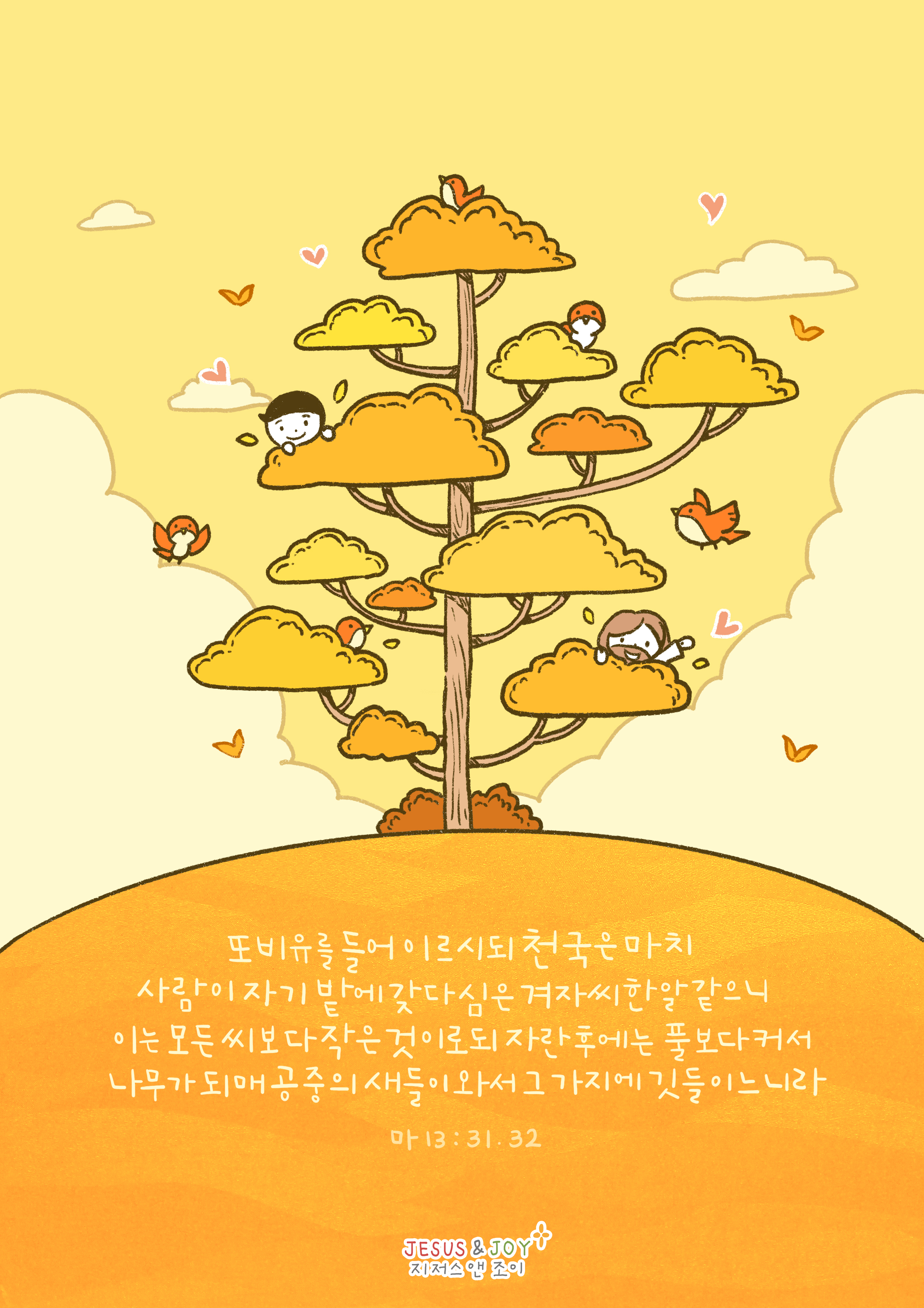 공중의 새들이 와서 그 가지에 깃들이느니라