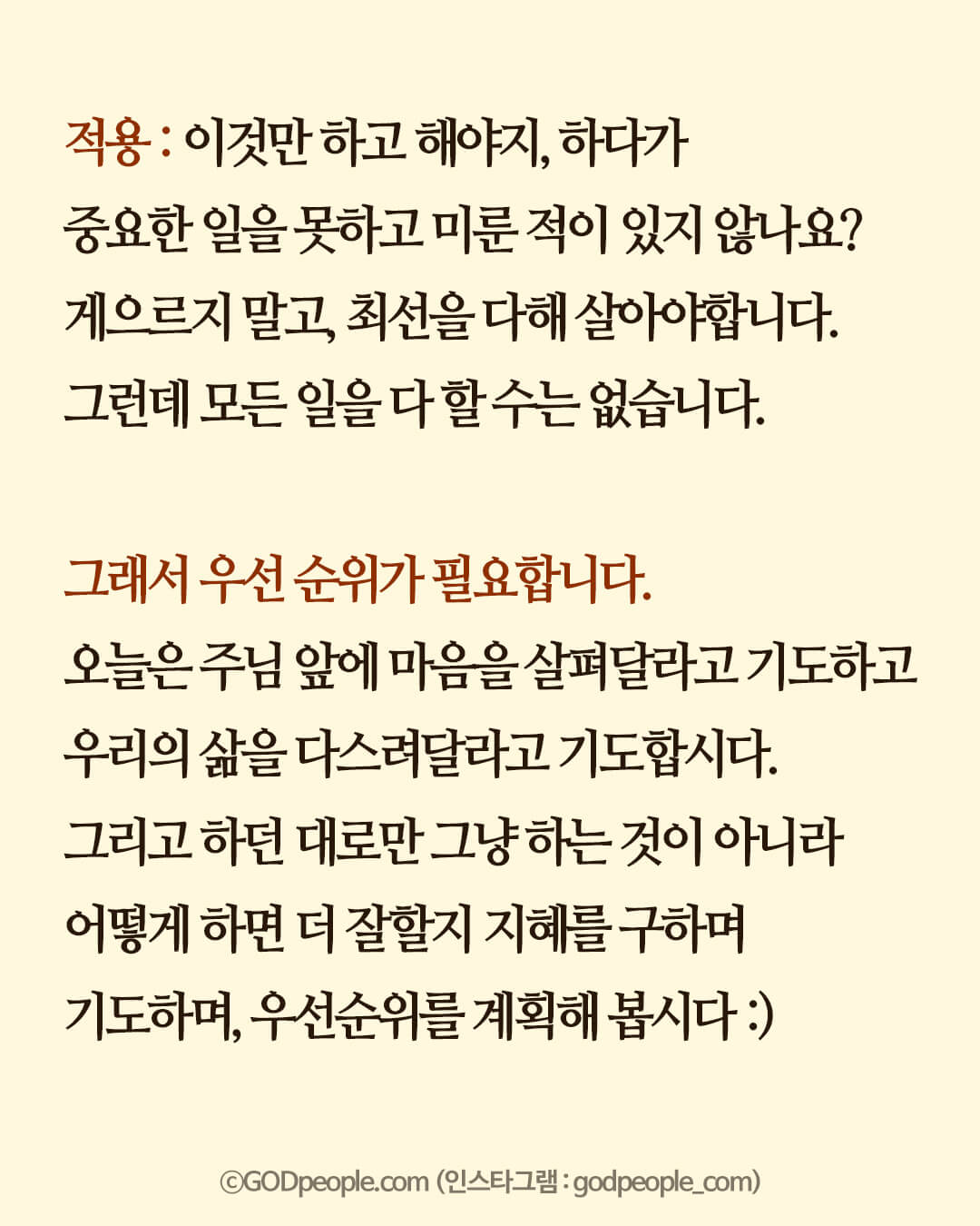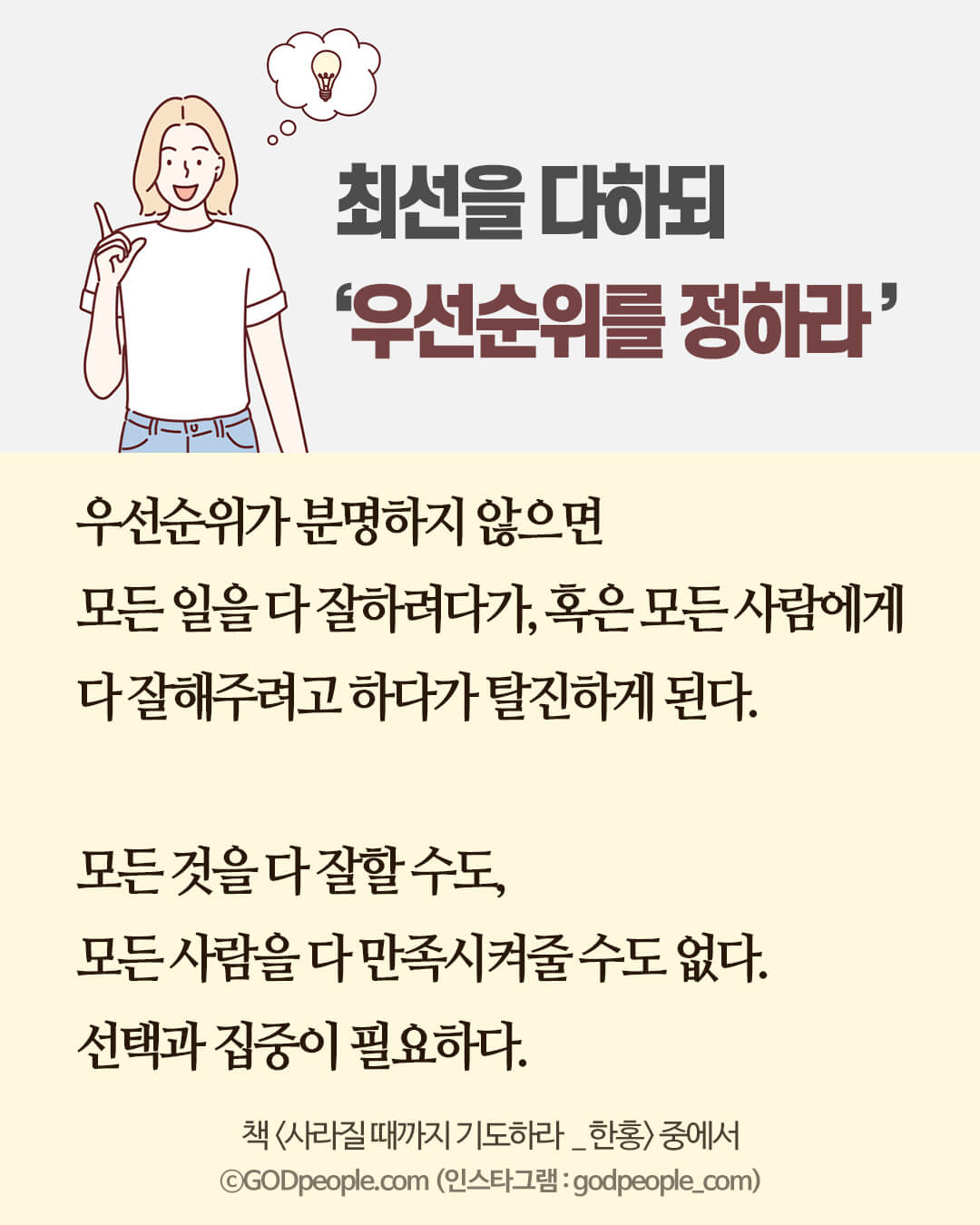 우선순위 없이 모든 일을 다하려고 하다가 피곤해진다.