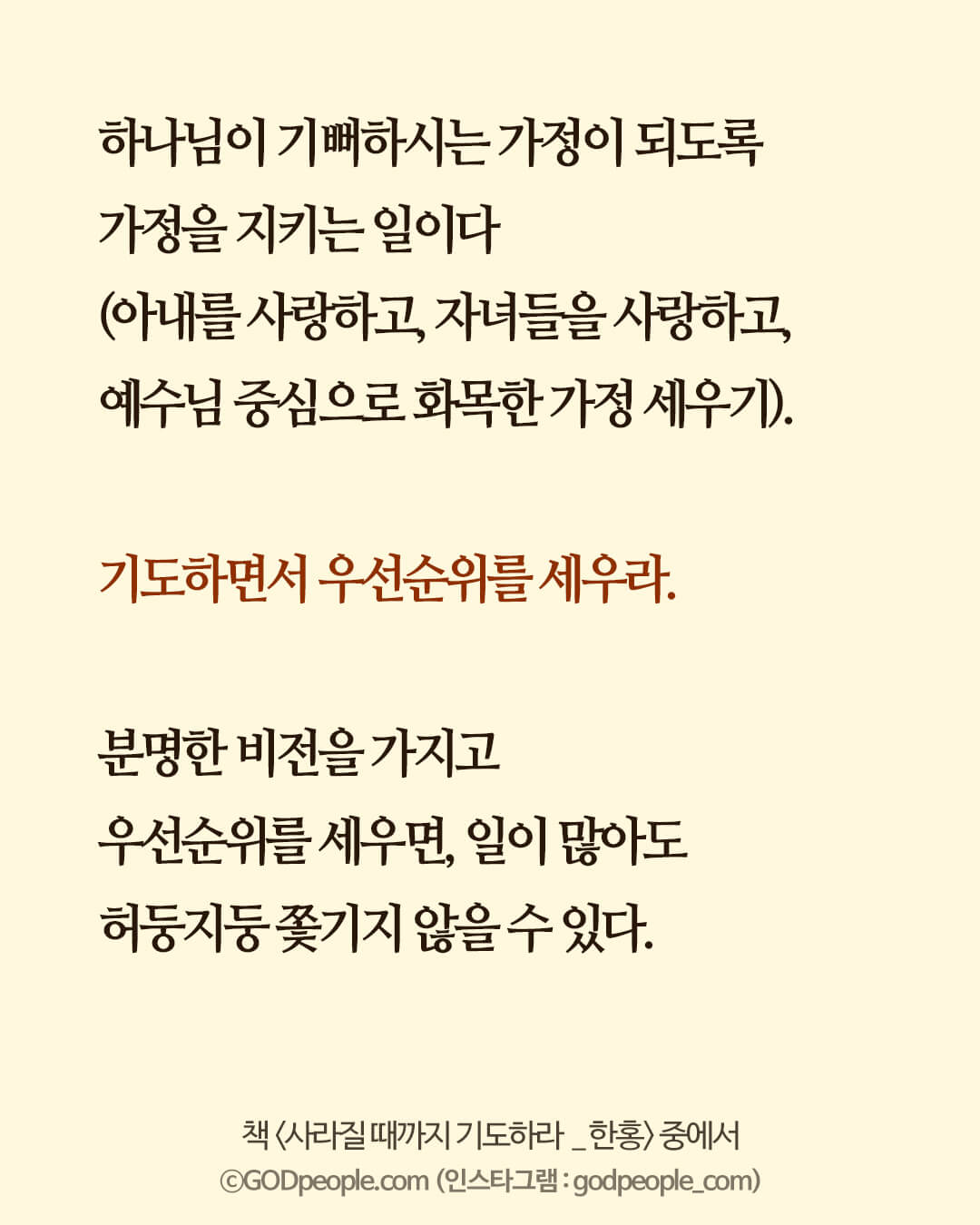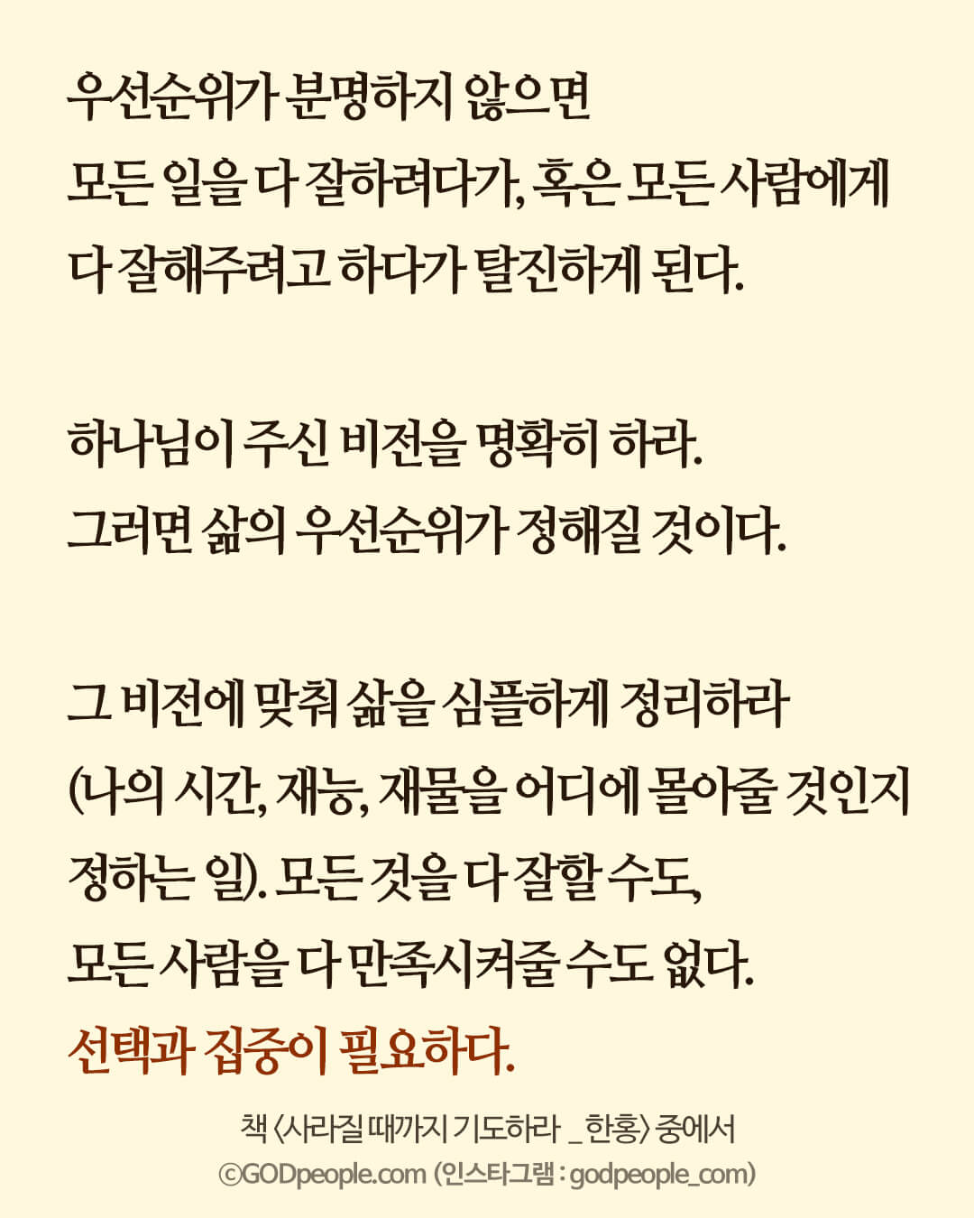 당신의 최우선 순위와 비전이 무엇인지 기도하며 생각하라.