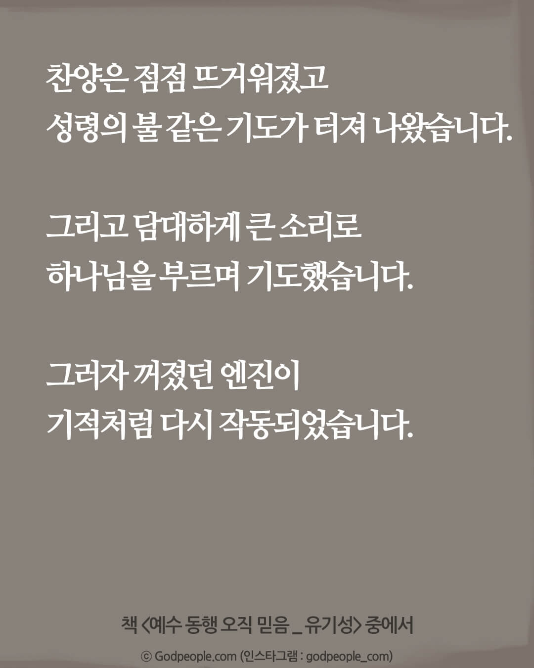그러자 꺼졌던 엔진이 기적처럼 다시 작동되었습니다.