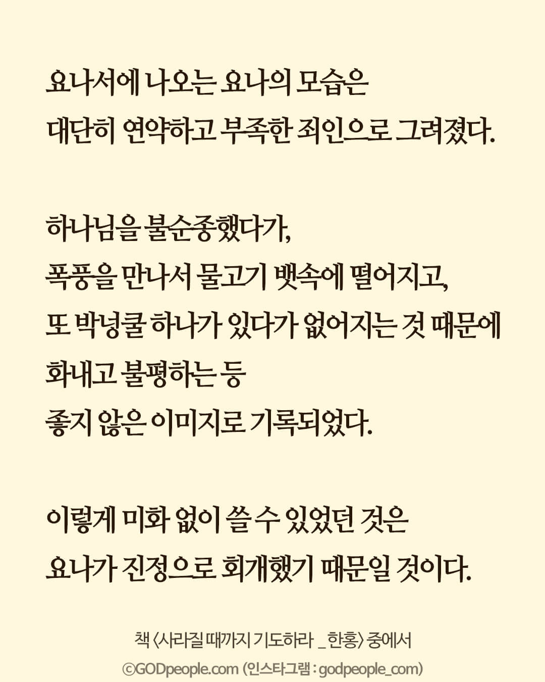 이런 요나가 하나님과 함께 하면서 바뀐 것이다.
