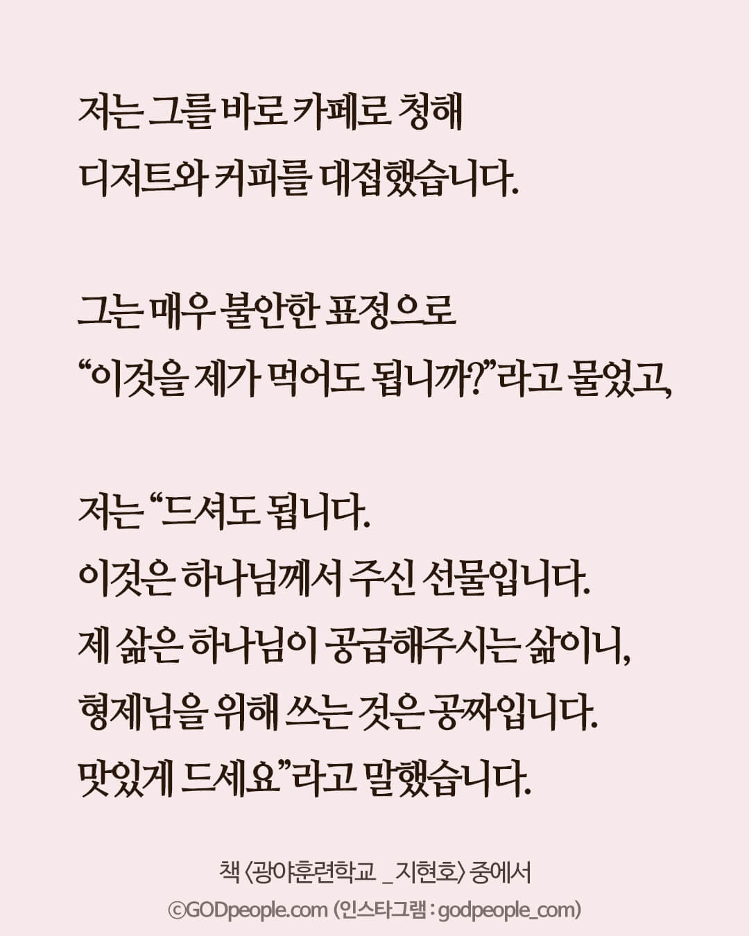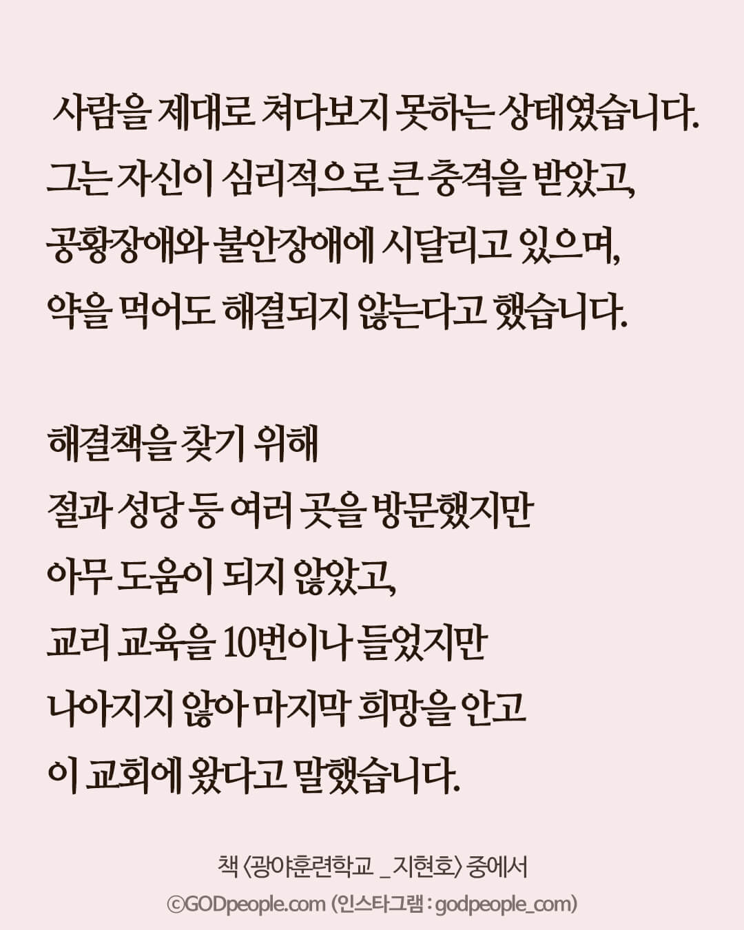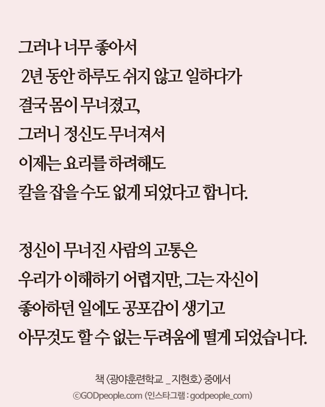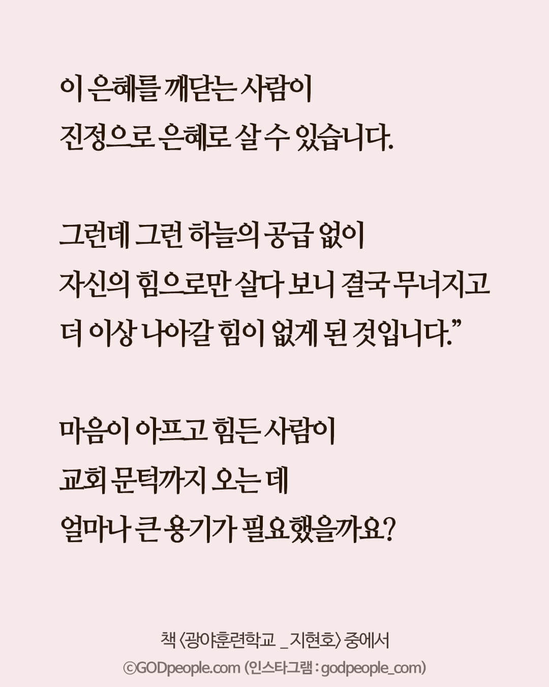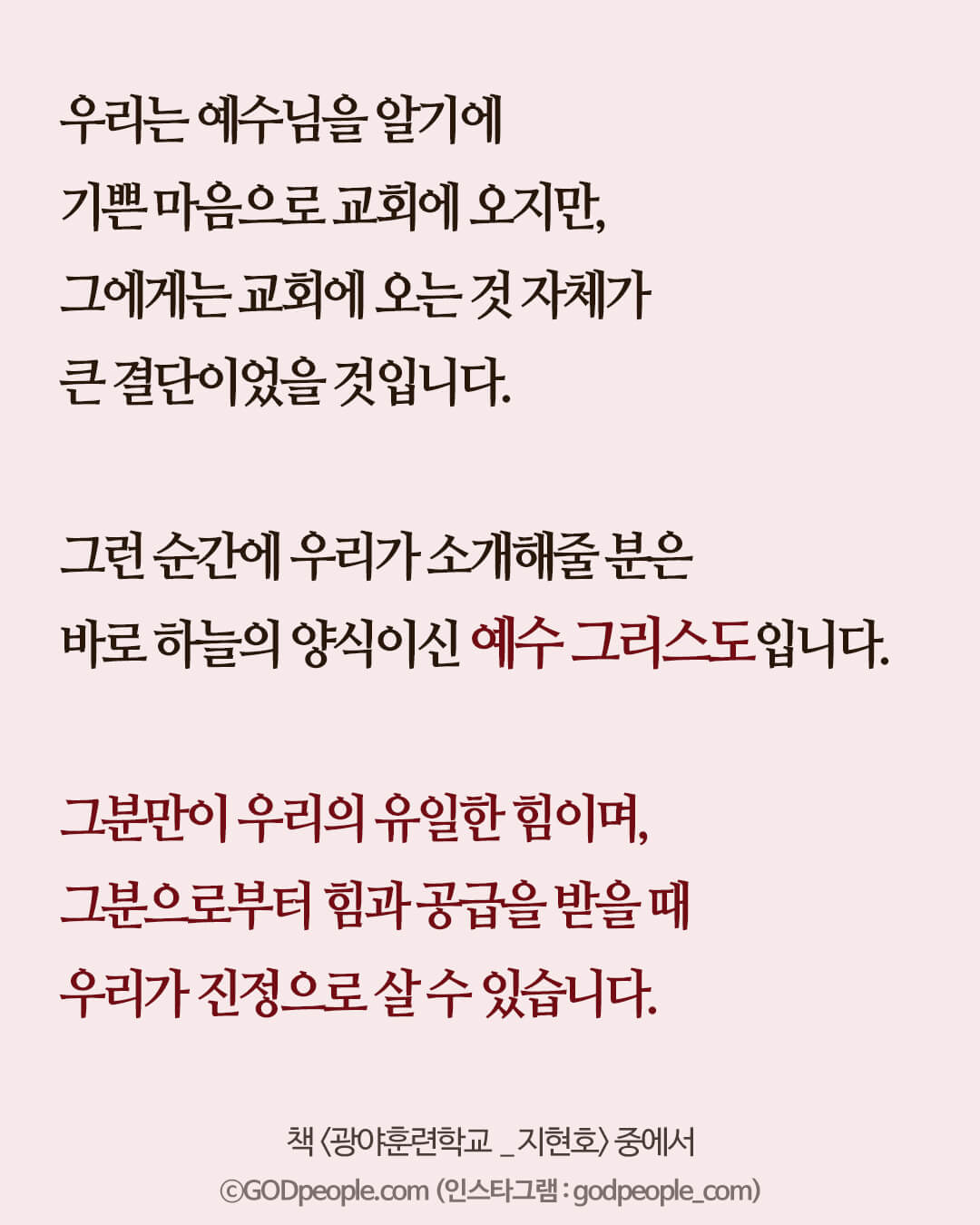* 갓피플 인스타 : 인스타에서도 갓피플을 만날 수 있어요! (팔로잉~)▶ http://www.instagram.com/godpeople_com좋아요아멘개척교회 돕기 2025-08-22 · 3533 · 86 · 12번아웃공황장애불안장애안식갓피플 인스타더보기그렇게 준비하고 헌신했는데,,,그의 인생은 허무하게 끝난 것처럼 보였습니다. 그러나결혼에서 매우 중요한 부분! 기억하세요.내 생각이 너무 강해서, 주님의 사인도 못 알아들으면 어떡해요?