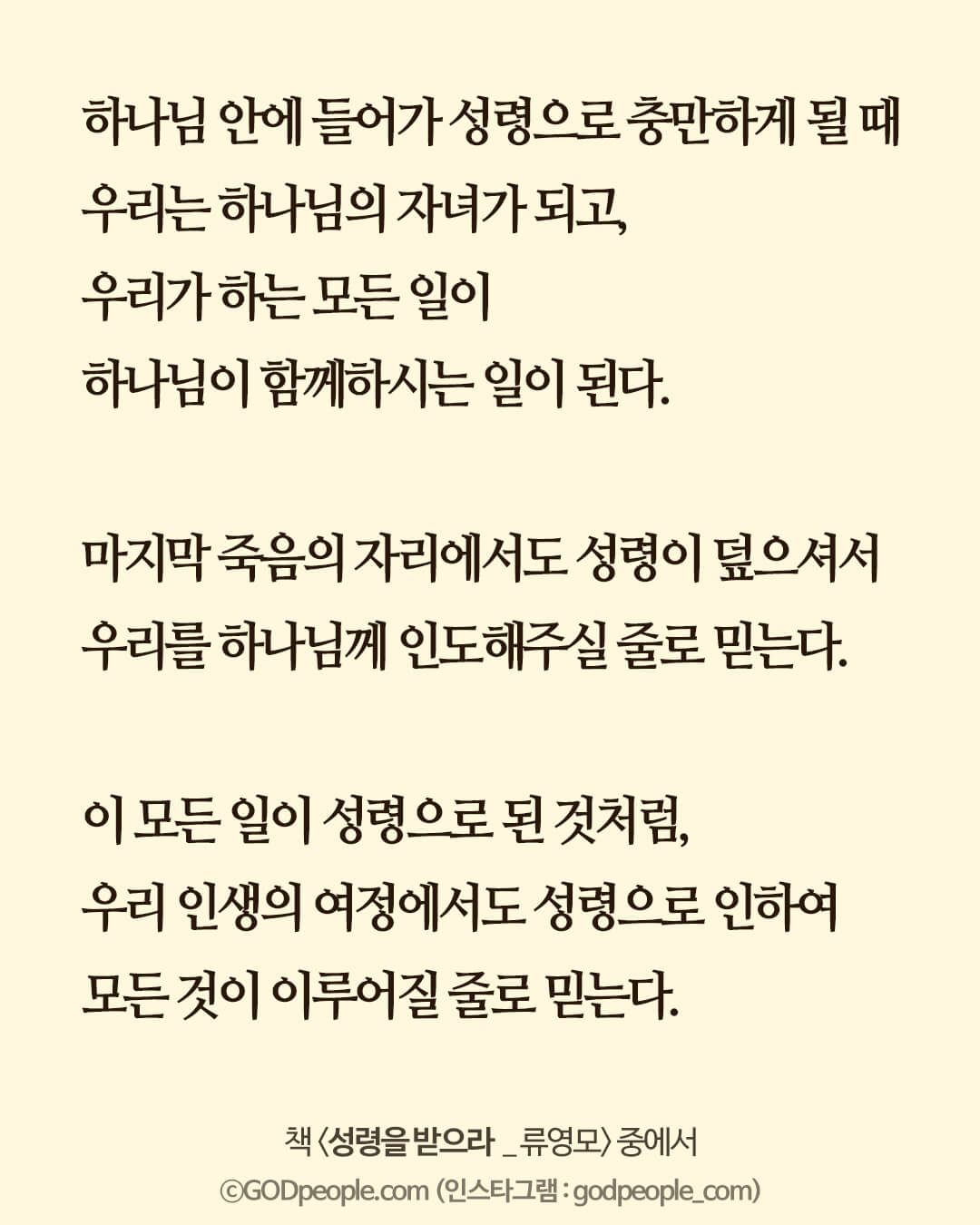 우리가 구해야 할 한 가지 기도 제목은 성령으로 충만해지는 것이다.