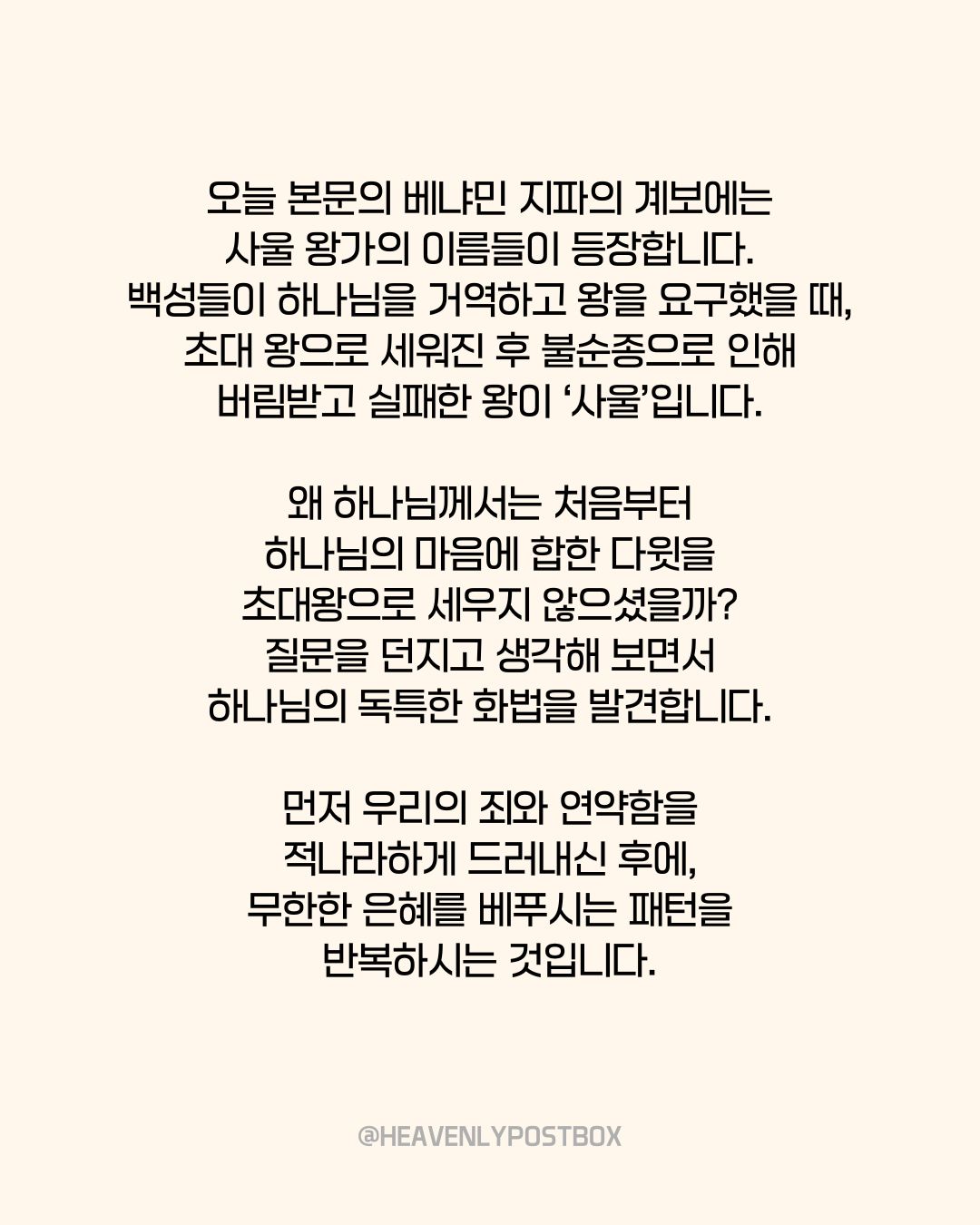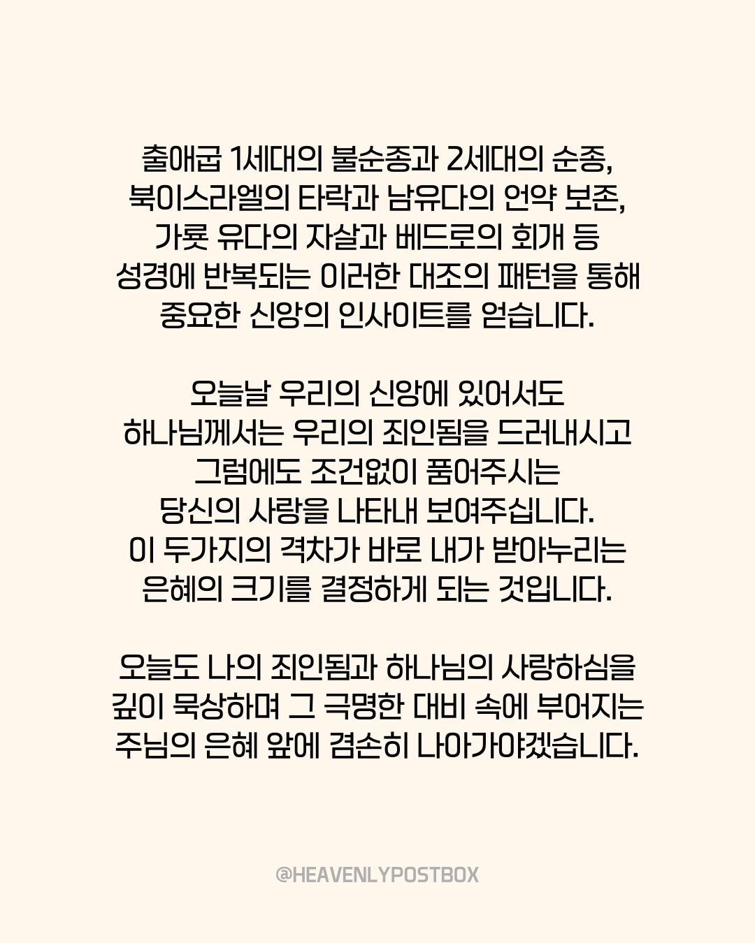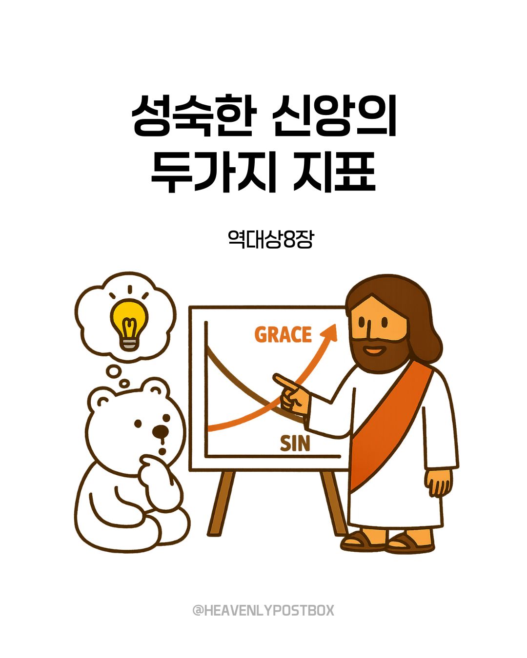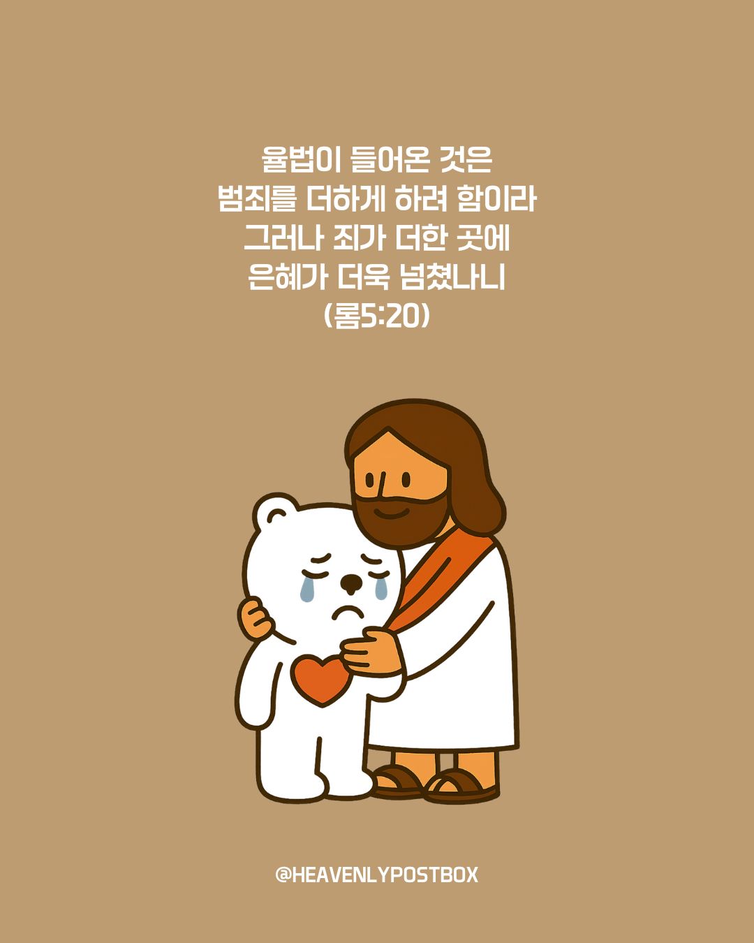 ❤️하늘우체통 큐티레터 구독하시면,매일 새벽 카톡으로 배달됩니다.https://open.kakao.com/o/g3FUFNsh❤️하늘우체통 인스타그램https://www.instagram.com/heavenlypostbox/윤홍진 작가 작품활동 응원하기!지난 20년간 갓피플 만화는 주보 사용을 무료로 제공해왔습니다. 이제는 작가들에게 작은 정성을 표현하면 어떨까요? 주보 1회 사용시 1,000원의 자발적 결제 후 이용해주세요주보사용 자발적 결제1,000원작가에게 커피 한잔선물하기좋아요아멘개척교회 돕기 2025-09-08 · 1426 · 17 · 2역대상성숙한신앙은혜죄인됨아가페사랑곰팅이의 집_윤홍진더보기참된 용서의 뿌리는 '긍휼' (마태복음18:15-35)숨만 쉬어도 소중한 존재인 나 (마태복음18:1-14)내 믿음이 아닌, 하나님의 믿음으로 (마태복음17:14-27)
