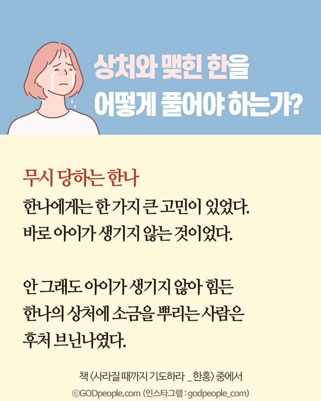 그러면 하나님께서 인간이 줄 수 없는 위로를 주시며 살길을 열어주신다.