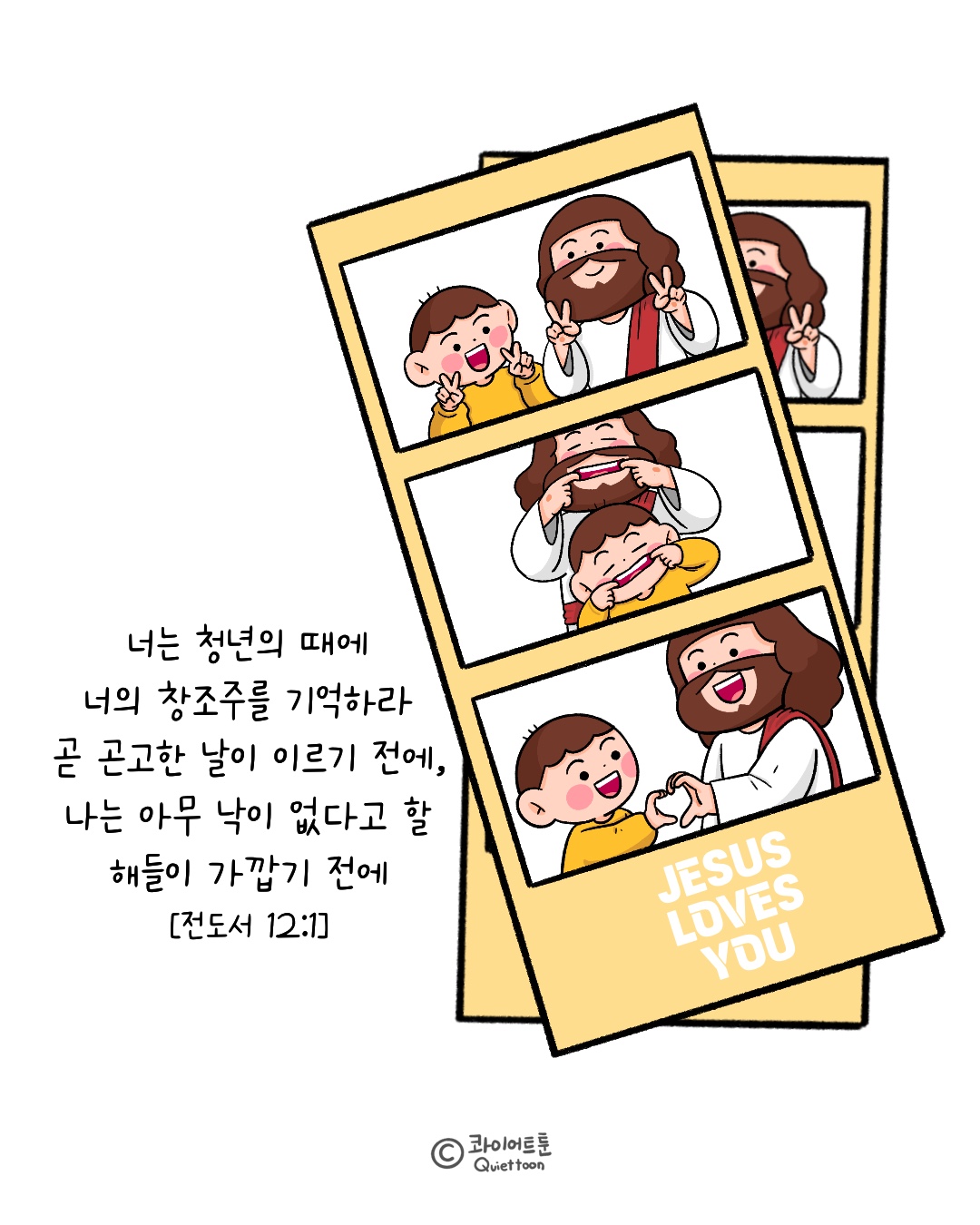 홍기두 작가 작품활동 응원하기!지난 20년간 갓피플 만화는 주보 사용을 무료로 제공해왔습니다. 이제는 작가들에게 작은 정성을 표현하면 어떨까요? 주보 1회 사용시 1,000원의 자발적 결제 후 이용해주세요주보사용 자발적 결제1,000원작가에게 커피 한잔선물하기좋아요아멘개척교회 돕기 2025-09-21 · 1713 · 25 · 5그림묵상전도서콰이어트툰_홍기두더보기너를 지키시기를 원하며그 수를 셀 수도 없나이다내 양은 내 음성을 들으며