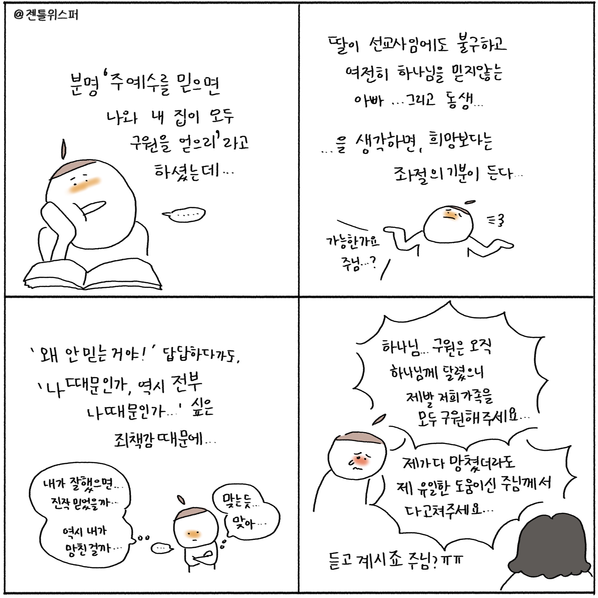 최세미 작가 작품활동 응원하기!지난 20년간 갓피플 만화는 주보 사용을 무료로 제공해왔습니다. 이제는 작가들에게 작은 정성을 표현하면 어떨까요? 주보 1회 사용시 1,000원의 자발적 결제 후 이용해주세요주보사용 자발적 결제1,000원작가에게 커피 한잔선물하기좋아요아멘개척교회 돕기 2025-10-01 · 1104 · 4 · 1사도행전16장 영혼구원 가족구원 전도 나의부족함God's gentle whisper_최세미더보기시편23:1널 위해 기도하고 있어!어떤 순간에도