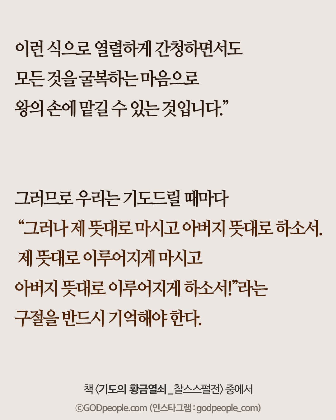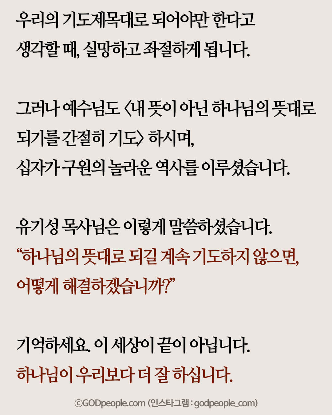 제 뜻대로 이루어지게 마시고 아버지 뜻대로 이루어지게 하소서!”라는
