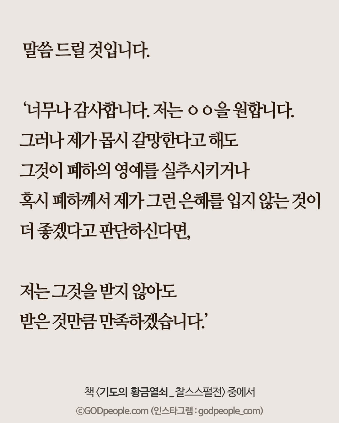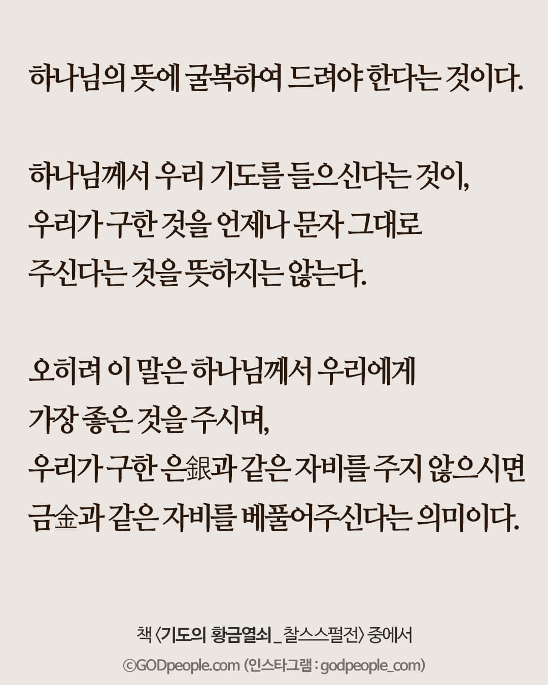 우리가 구한 것을 언제나 문자 그대로 주신다는 것을 뜻하지는 않는다.