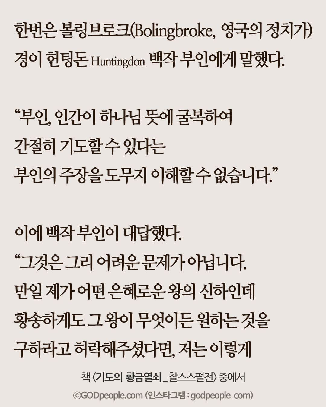 헌팅돈Huntingdon 백작 부인에게 말했다.