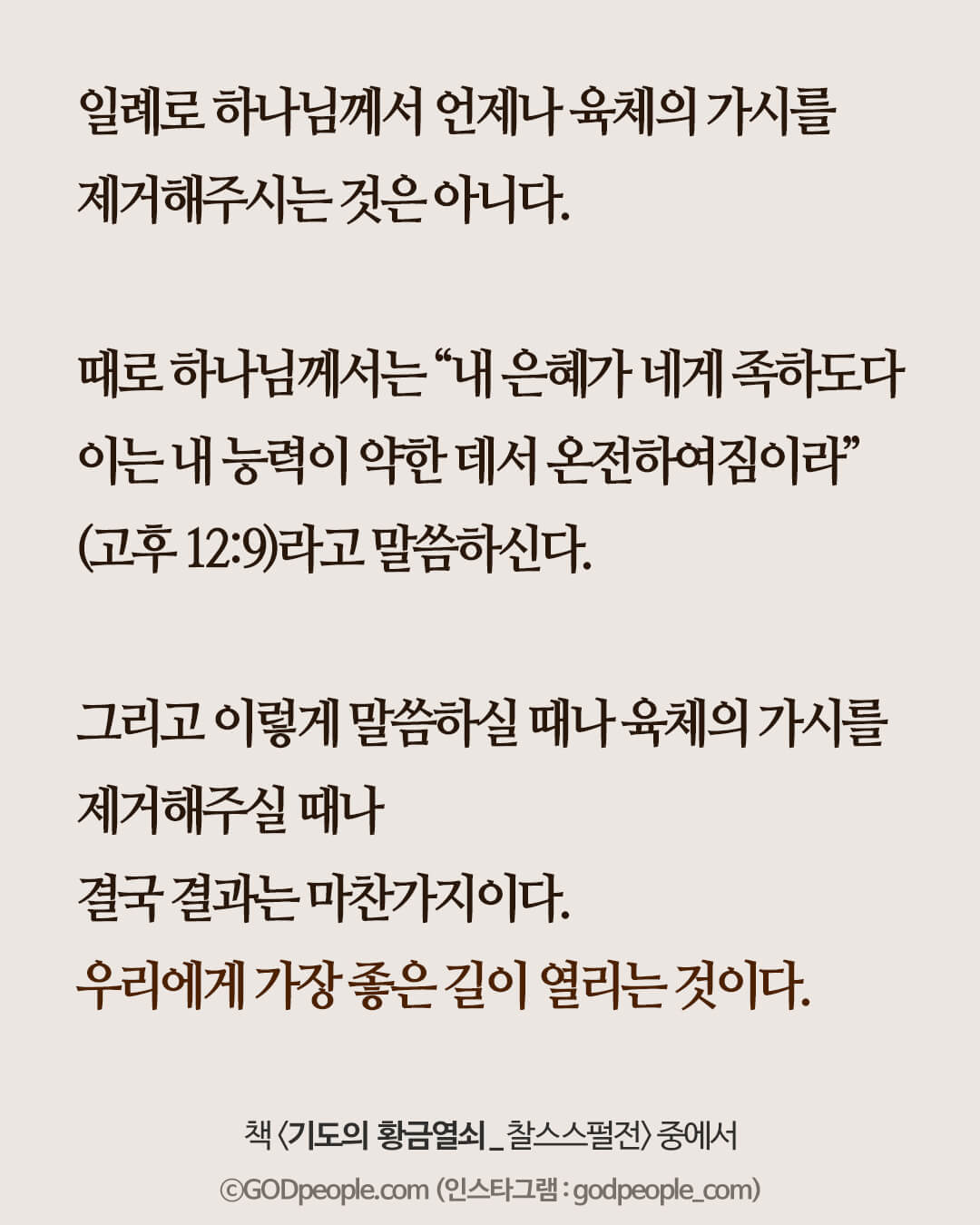 일례로 하나님께서 언제나 육체의 가시를 제거해주시는 것은 아니다.