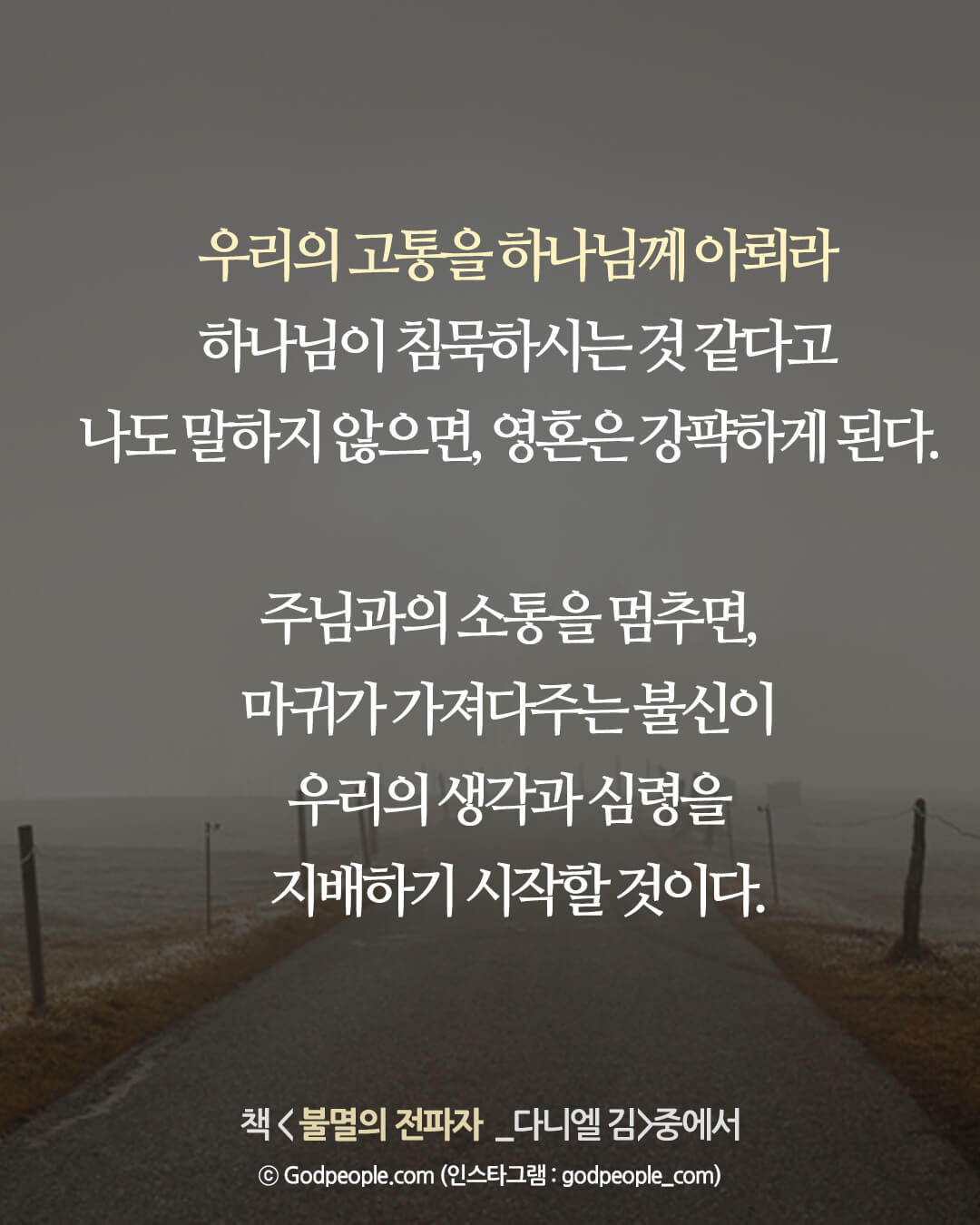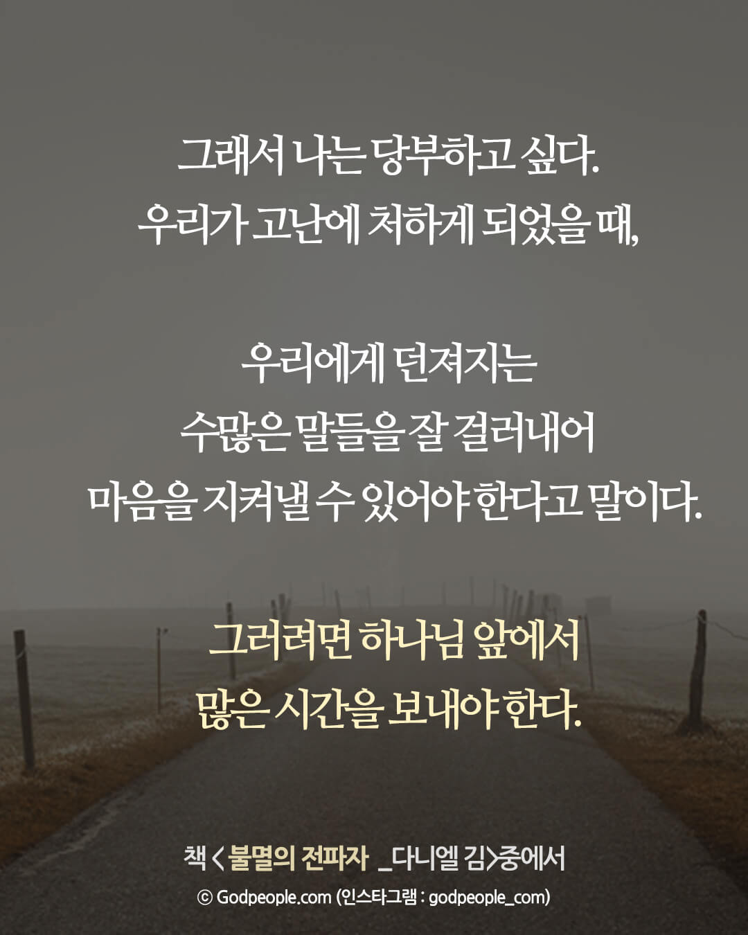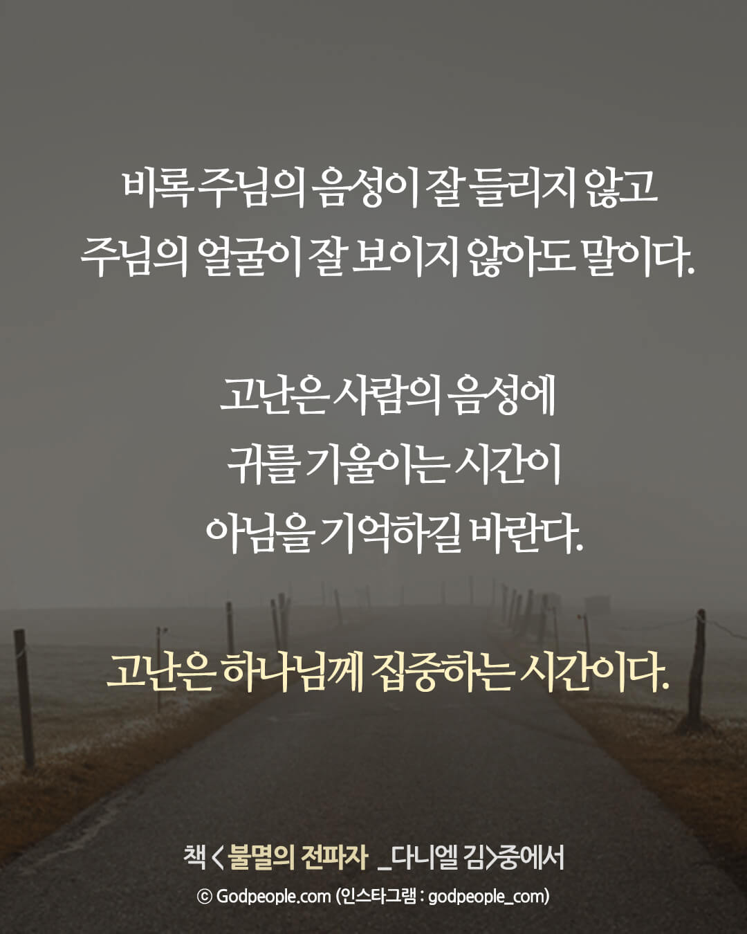 고난은 사람의 음성에 귀를 기울이는 시간이 아님을 기억하길 바란다.