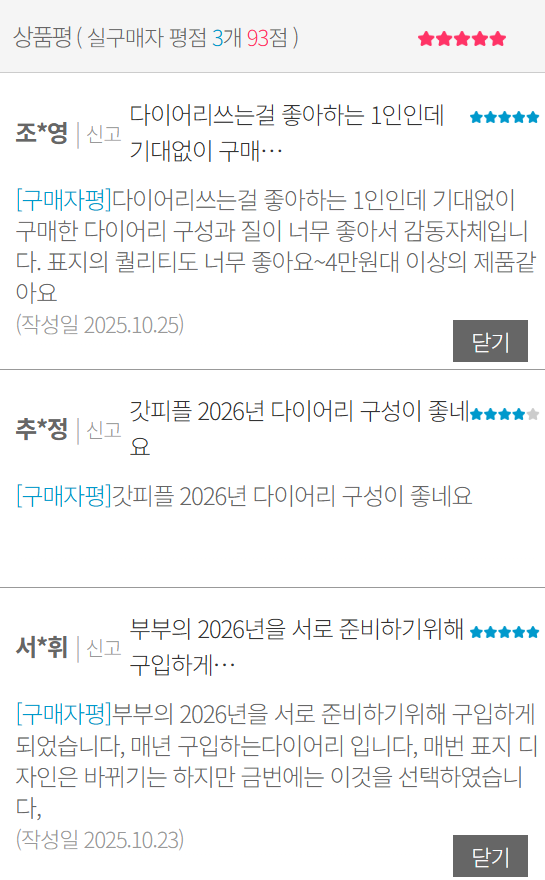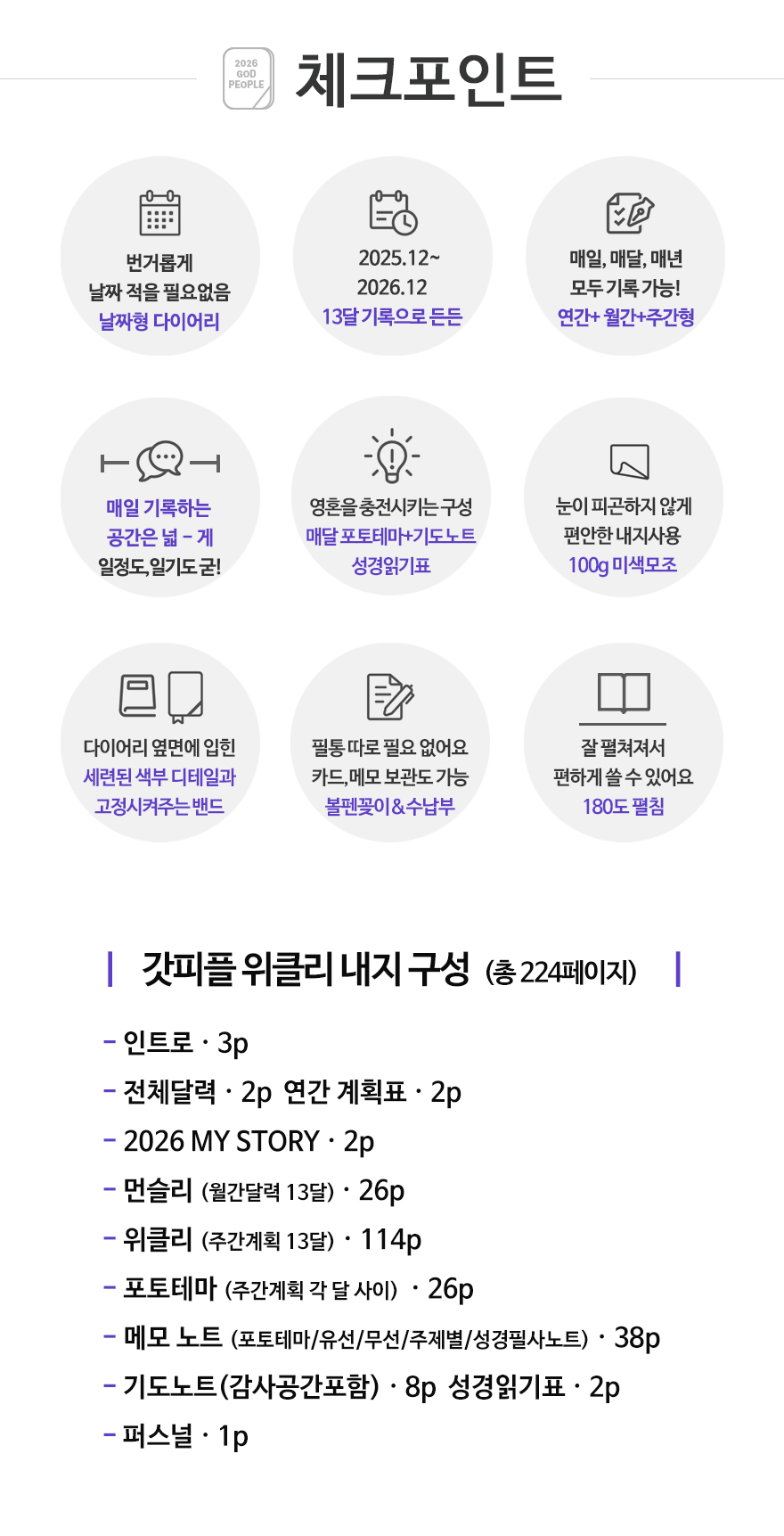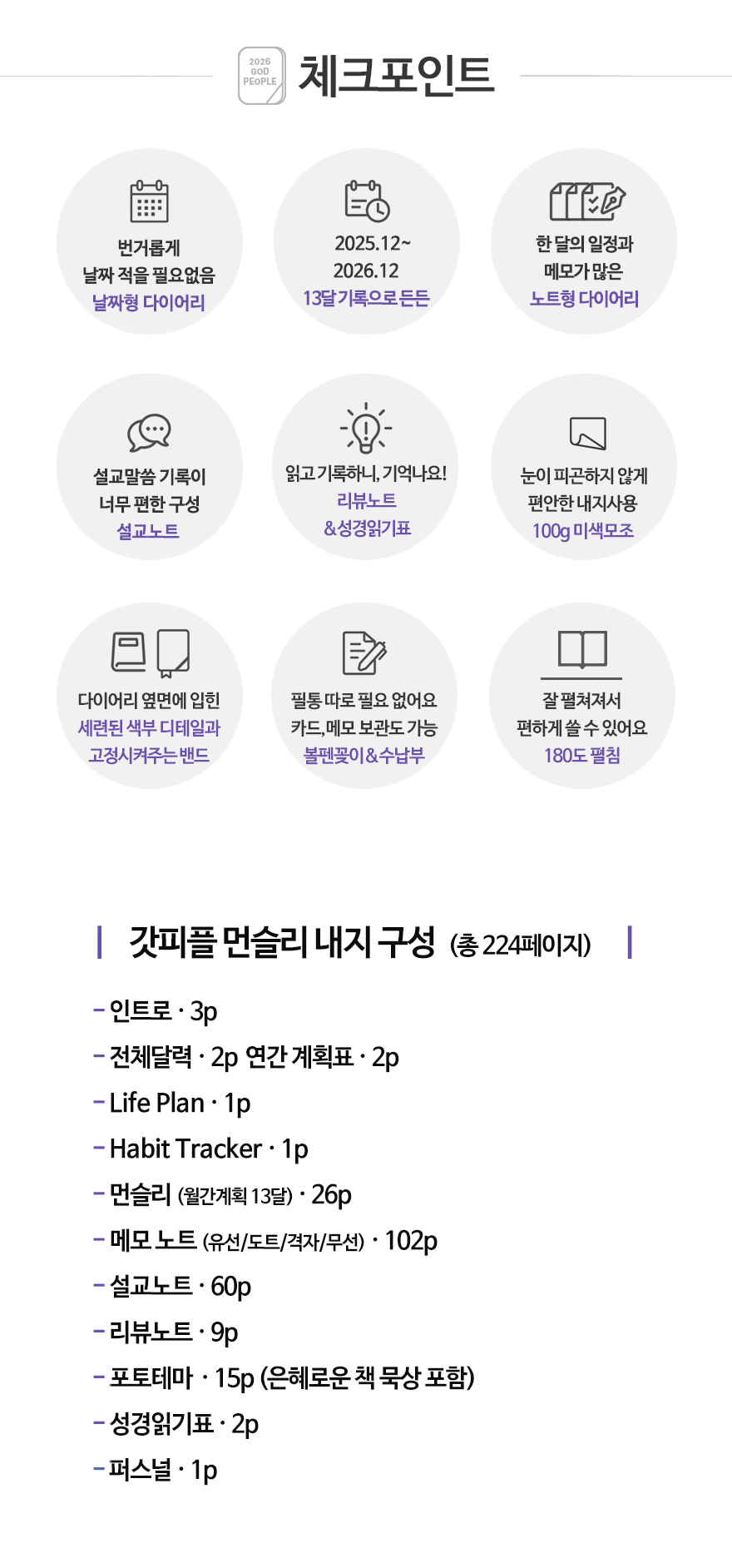 ▲ 내용 구성은 2026 갓피플 다이어리와 동일하고요.