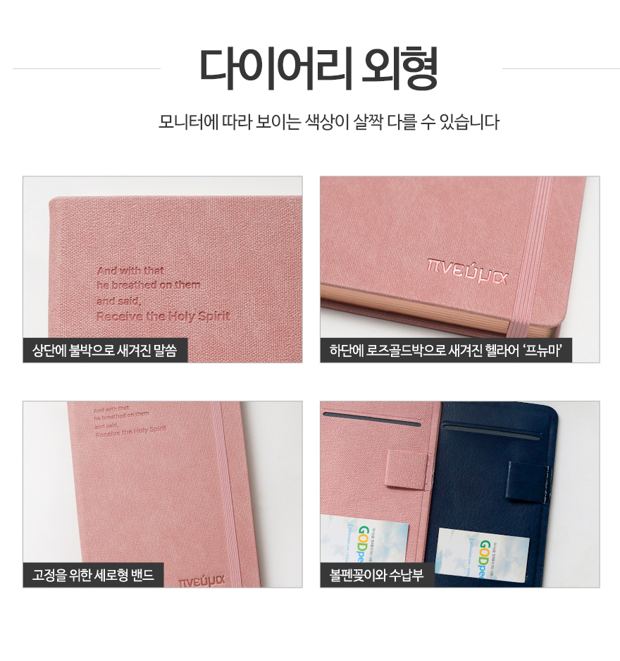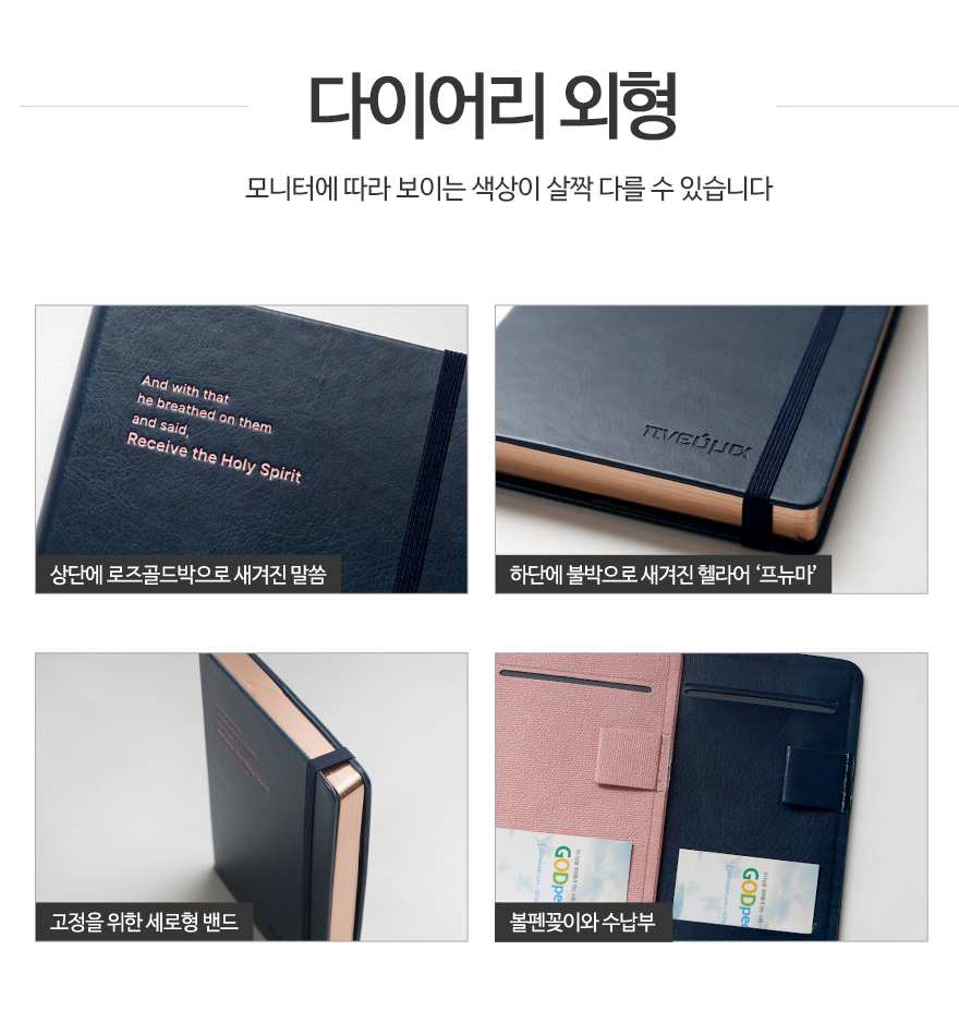매일 일정과 매달 포토말씀테마로 이뤄진, 매일 다이어리 쓰기 좋은 다이어리랍니다.