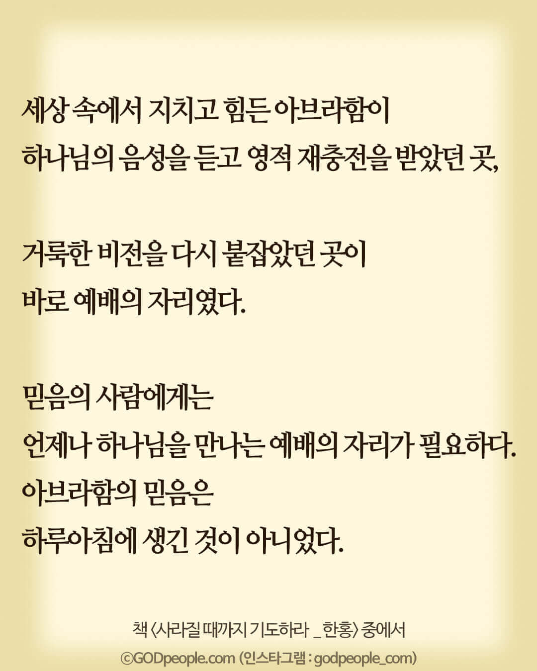 100세까지 견딘 아브라함의 믿음은 하루아침에 생긴 것이 아니었다.