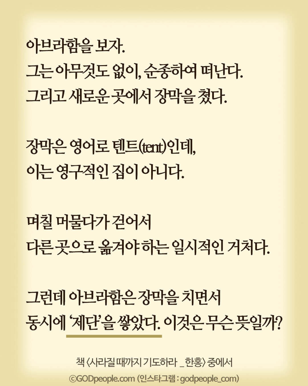 아브라함은 장막을 치면서 동시에 제단을 쌓았다.