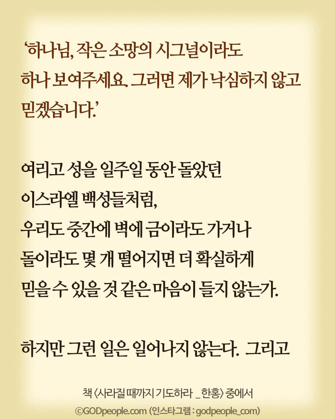 ‘하나님, 작은 소망의 시그널이라도 하나 보여주세요.