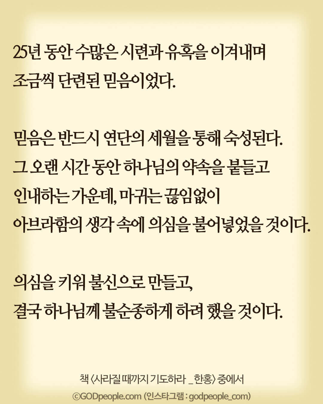 25년 동안 수많은 시련과 유혹을 이겨내며 조금씩 단련된 믿음이었다.