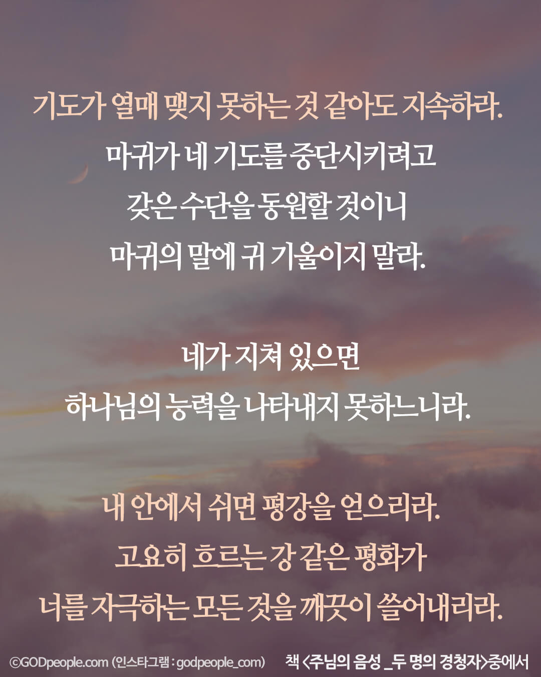 마귀가 네 기도를 중단시키려고 갖은 수단을 동원할 것이니