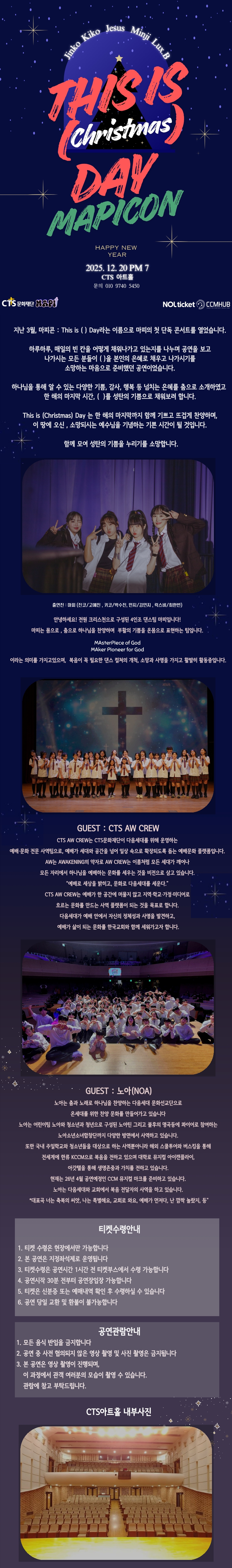 좋아요아멘개척교회 돕기 2025-11-29 · 352 · · 2025크리스마스콘서트마피콘서트찬양콘서트마피크리스마스콘서트마피연말콘서트기독문화소식더보기홀리원 20주년 기념 크리스마스콘서트 "For the OnlyOne" 한국선교 140주년기념 - 기억의 하모니 (무료)[인터뷰] 교회밖 탐구생활 1