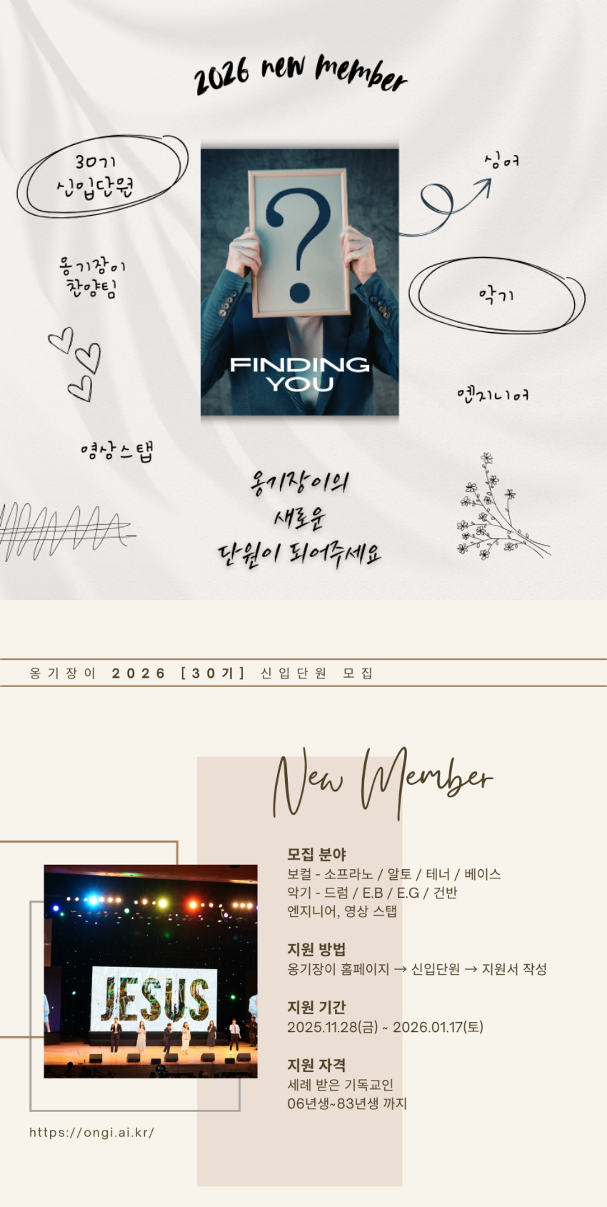 자세히 알아보기 링크 >> 신입단원모집 - 옹기장이좋아요아멘개척교회 돕기 2025-12-23 · 438 · 5 · 1옹기장이단원모집옹기장이신입단원모집기독문화소식더보기홀리원 20주년 기념 크리스마스콘서트 "For the OnlyOne" 한국선교 140주년기념 - 기억의 하모니 (무료)[인터뷰] 교회밖 탐구생활 1