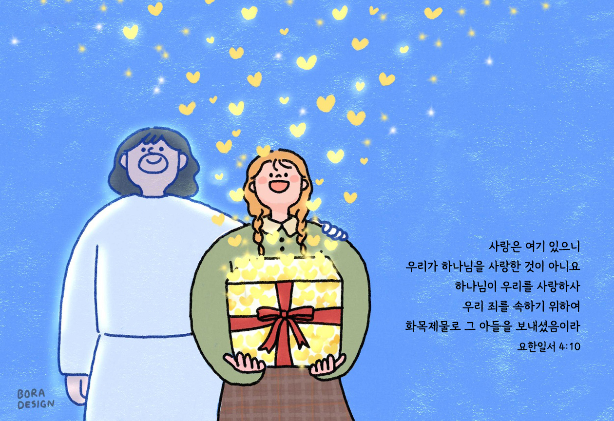 사랑은 여기 있으니 우리가 하나님을 사랑한 것이 아니요 하나님이 우리를 사랑하사 우리 죄를 속하기 위하여 화목제물로 그 아들을 보내셨음이라 _요한일서 4: 10 이보라 작가 작품활동 응원하기!지난 20년간 갓피플 만화는 주보 사용을 무료로 제공해왔습니다. 이제는 작가들에게 작은 정성을 표현하면 어떨까요? 주보 1회 사용시 1,000원의 자발적 결제 후 이용해주세요주보사용 자발적 결제1,000원작가에게 커피 한잔선물하기좋아요아멘개척교회 돕기 2026-01-02 · 883 · 6 · 1말씀카드사랑하나님예수님은혜소망그림묵상주보만화복음구원갓피플만화Every moment diary_이보라더보기아버지께서 찾으시는 예배자나를 버리지 않으시고나의 마음을 다하여