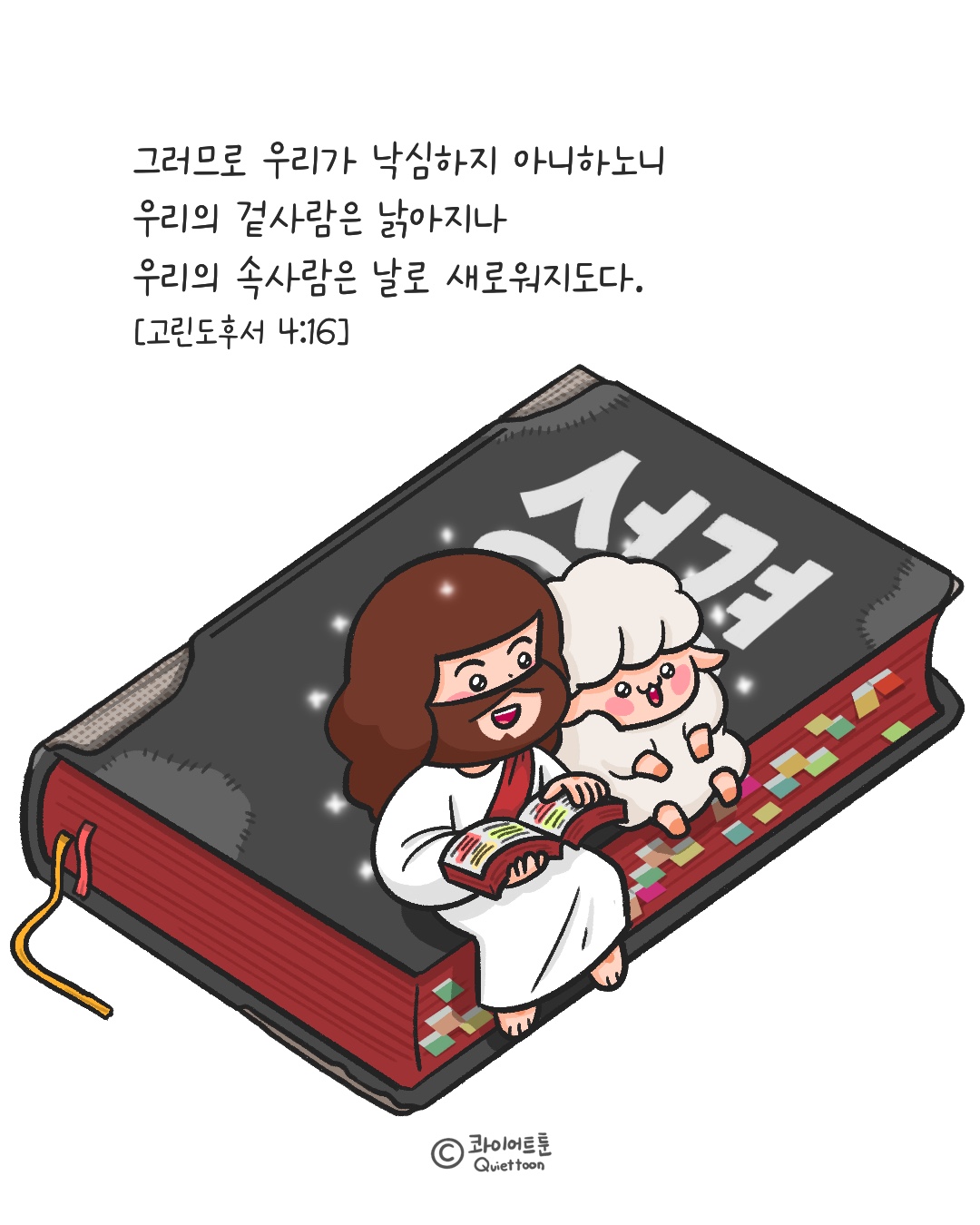 오늘도 말씀이 필요해 365 그림 일력콰이어트툰(홍기두) 도란도란 우리 가족 말씀 암송생명의말씀사 편집부,그림-홍기두홍기두 작가 작품활동 응원하기!지난 20년간 갓피플 만화는 주보 사용을 무료로 제공해왔습니다. 이제는 작가들에게 작은 정성을 표현하면 어떨까요? 주보 1회 사용시 1,000원의 자발적 결제 후 이용해주세요주보사용 자발적 결제1,000원작가에게 커피 한잔선물하기좋아요아멘개척교회 돕기 2026-01-22 · 910 · 24 · 7그림묵상고린도후서콰이어트툰성경콰이어트툰_홍기두더보기너를 지키시기를 원하며난 여호와로 즐거워하리 !흑암과 빛이 같음이니이다
