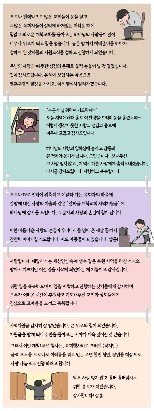 아래 글은 사역지원금을 받은 목회자분들께서 보내주신 감사의 글입니다.