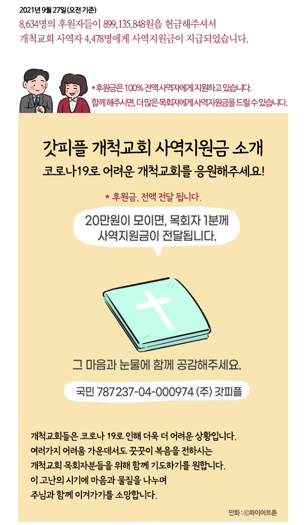 자세한 사역 내용과, 개척교회 목회자 사역지원금 신청은 아래 링크를 참고해주세요.