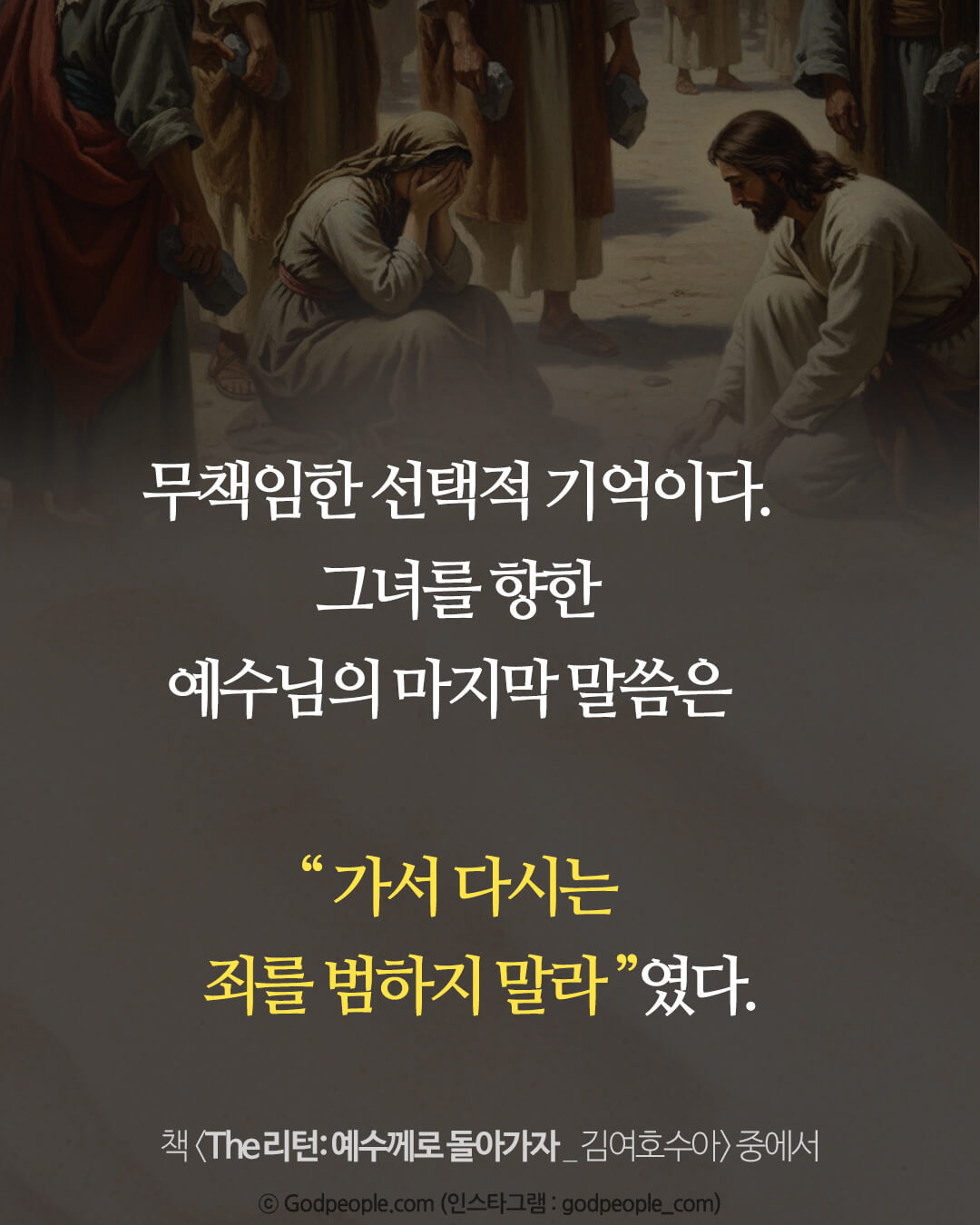 이 여인을 향해서 “나도 너를 정죄하지 않는다”라고 하신 것이다.
