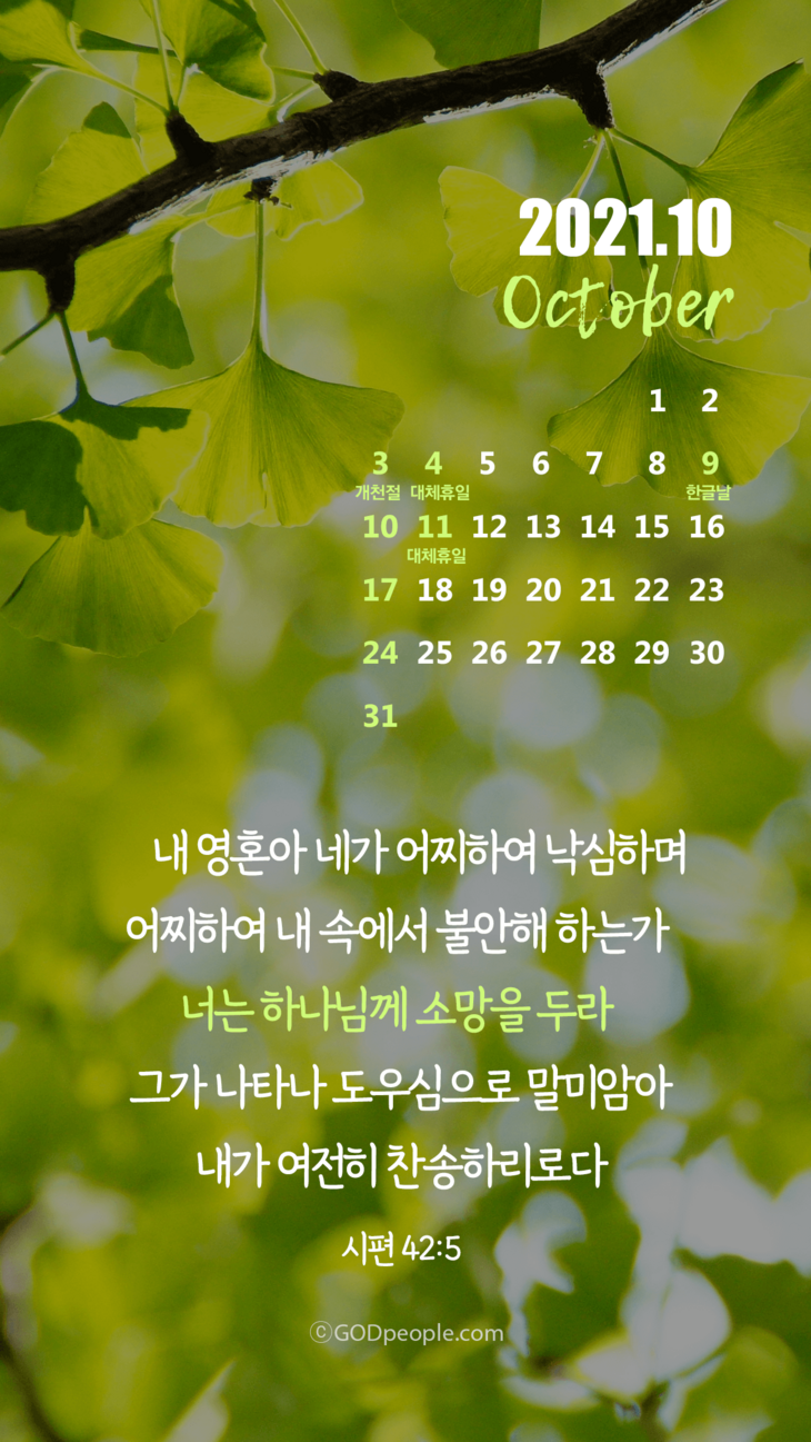 기도에 힘을 뿜뿜 주는! 10월 갓피플 말씀바탕화면이 나왔습니다.