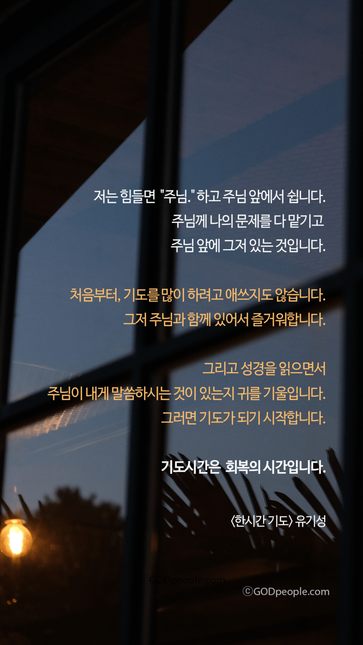 끝까지 기도하는 힘을 구하며, 끈질기게 기도하는 10월 되시길 축복합니다! 신실하신 주님이 그 과정 자체를 받고 계시니까요^^
