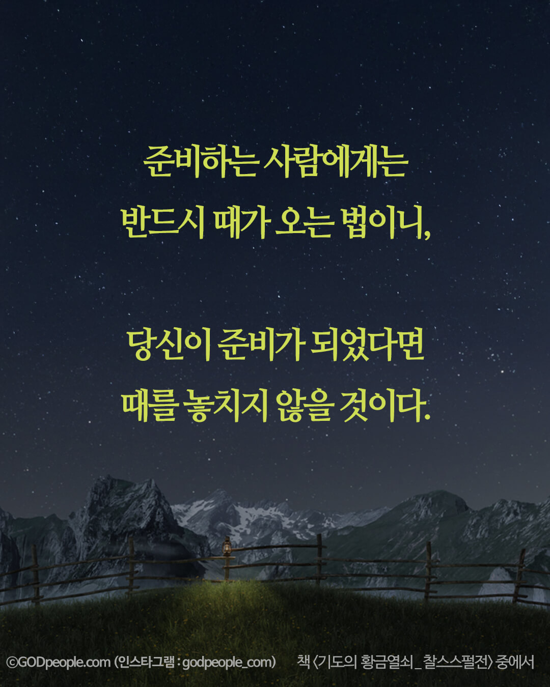 당신이 준비가 되었다면 때를 놓치지 않을 것이다.