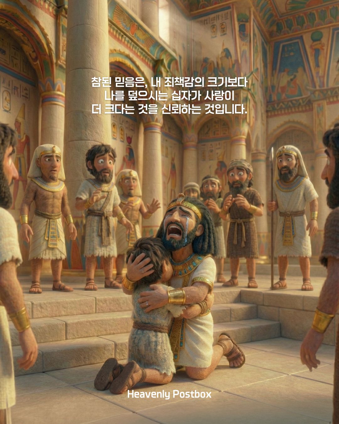 창세기50장을 보면, 요셉의 조건없는 용서를 받고도 형들의 죄책감은 평생 씻기지 않았음을 확인합니다. 아버지가 세상을 떠나자 그들은 "요셉이 이제 본색을 드러내 복수할 것"이라는 공포에 압도되어, 아버지의 거짓 유언까지 지어내며 목숨을 구걸합니다. 이처럼 조건적 인과응보에 매몰된 인생은, 이미 완전한 용서를 받아놓고도 평생을 심판의 두려움 속에서 벌벌 떨며 '지옥 같은 삶'을 살게 된다는 것을 보여주는 예표입니다.