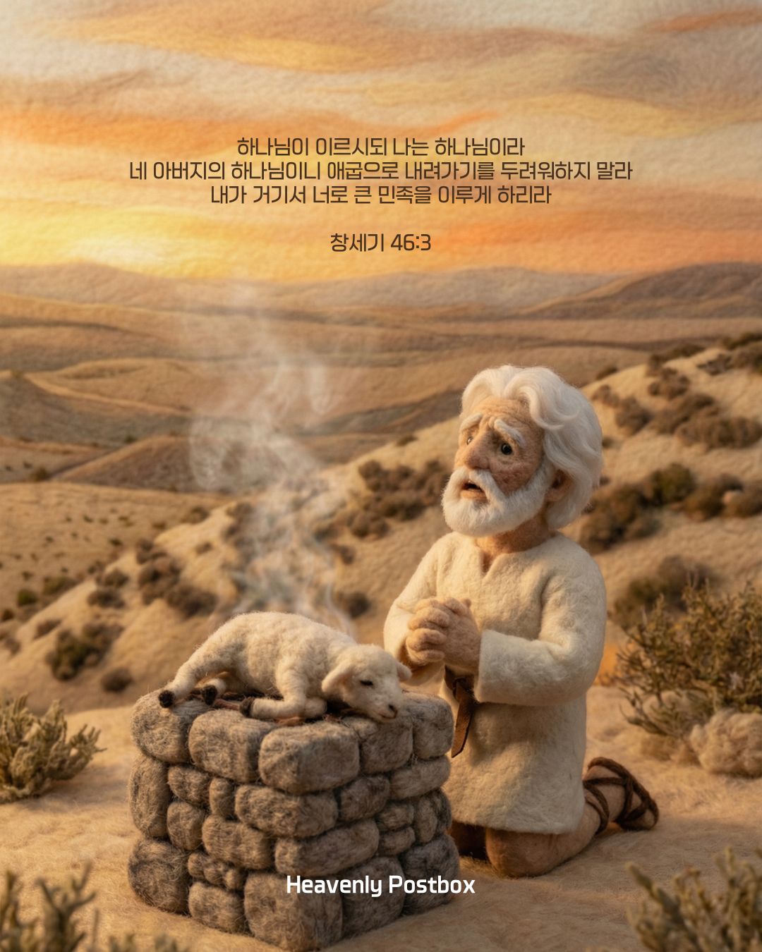 그러나 창세기46장의 야곱은 과거의 야곱이 아닙니다. 그는 먼저 브엘세바로 올라가 하나님께 희생제사를 드립니다. 자신의 간절한 소망이나 감정에 휘둘려 섣불리 움직이지 않고, 하나님의 약속과 결재를 기다리는 성숙된 신앙으로 다듬어진 모습을 볼 수 있습니다. 야곱은 과거 삼촌 라반의 집을 떠나 약속의 땅 벧엘로 곧장 나아가지 않고 눈에 보기 좋은 '세겜'에 머물며 적당히 타협했을 때 겪은, 끔찍한 트라우마를 기억했을 것입니다. 사랑하는 딸 디나 강간사건과 두 아들의 피비린내 나는 살육... 약속의 땅 언저리에서도 그런 참사를 당했는데, 하물며 명백한 우상숭배의 본거지인 애굽으로 내려간다는 건, 하나님의 약속을 정면으로 거부하는 행위라고 생각했을 것입니다. 하나님의 결재를 기다리는 야곱에게, 밤의 환상 중에 하나님의 세밀한 음성이 들려옵니다.