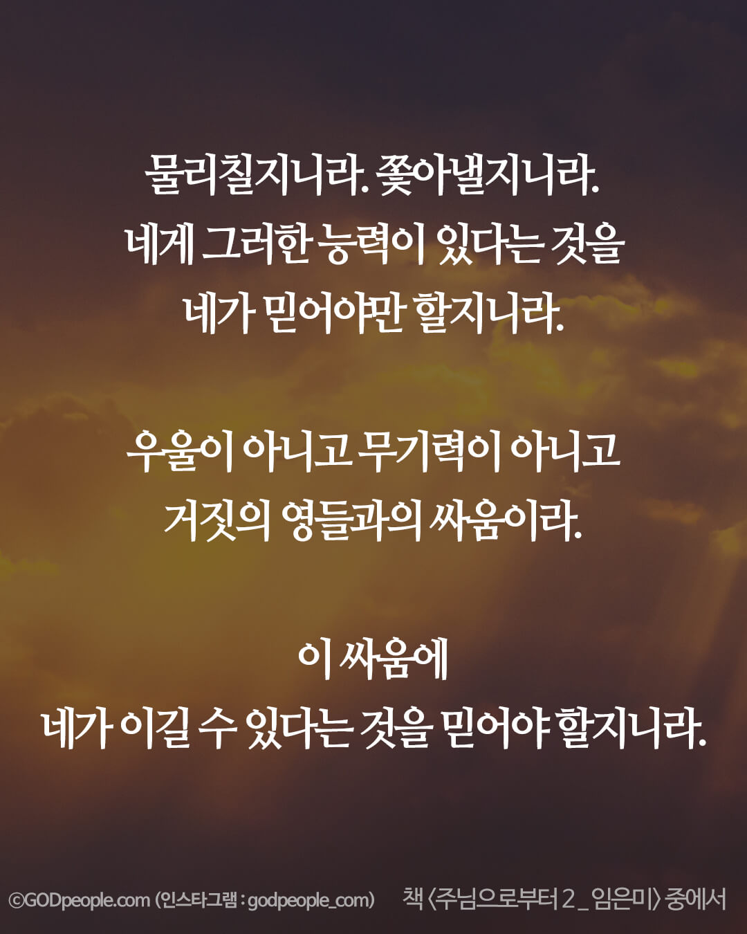 이 싸움에 네가 이길 수 있다는 것을 믿어야 할지니라.