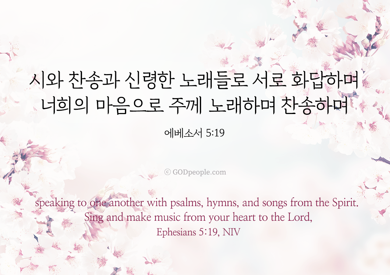 시와 찬송과 신령한 노래들로 서로 화답하며 너희의 마음으로 주께 노래하며 찬송하며 _에베소서 5:19speaking to one another with psalms, hymns, and songs from the Spirit. Sing and make music from your heart to the Lord, _Ephesians 5:19, NIV ♥ 교도소 재소자에게 성경책을 보내드립니다. [플로잉전용상품] 재소자에게 성경책 보내기_우리말성경 단본(실버그린)우리말성경 단본 (무색인/무지퍼/페이퍼백/실버그린/DKV2406)두란노 편집부 [플로잉전용상품] 재소자에게 성경책 보내기_큰글로 읽는 우리말 비전성경 중단본(호박색)큰글로 읽는 우리말 비전성경 중단본(색인/무지퍼/PU/호박색/DKV2206)도서출판 두란노두란노 편집부 위 성경책을 구매 (플로잉 Flowing) 하시면 "프리즌 리바이벌 PRISON REVIVAL "을 통해서 국내 교정기관의 담장 안에서 지내시는 분들에게 전달됩니다.♥ 수용자 자녀에게 성경만화, 묵상365를 보내드립니다. [플로잉전용상품] 수용자 자녀에게 성경만화 보내기_만화 예수님의 생애 세트 (전3권)온 가족이 함께 보는 사복음서김동순 [플로잉전용상품] 수용자 자녀에게 성경만화 보내기_[개역개정판] 카툰성경 세트(완간/전3권)그린이 : 키이스 닐리, 데이비드 마일즈 [플로잉전용상품] 갓피플 통해 쌀 보내기_백미 (10kg)오픈스토리 [플로잉전용상품] 맛있는 반찬보내기_김치세트 (유기농백김치+겉절이)참식품주식회사 위 상품 구매 (플로잉 Flowing) 하시면 "세움"을 통해서 수용자(교도소 재소자) 자녀들에게 전달됩니다.+오늘의말씀으로 만들었어요♡ 오늘의말씀 아크릴 자석액자+말씀을 듣고 필사하세요♡ 개역개정 MP3 다운로드 | 태블릿으로 필사 | 종이노트로 필사 좋아요아멘개척교회 돕기 2026-03-20 · 1875 · 164 · 오늘의말씀 말씀카드 에베소서5장19절 전도오늘의말씀더보기갓피플 오늘의말씀_마가복음1장11절_2018.6.28갓피플 오늘의말씀_요한복음20장22절_2018.6.26갓피플 오늘의말씀_마가복음1장17절_2018.6.29